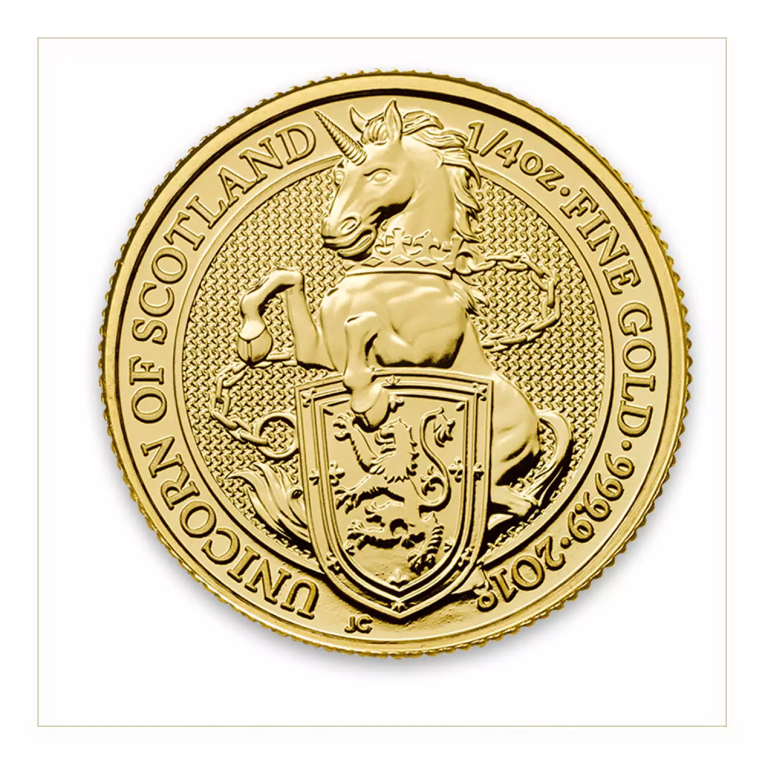 The ¼ oz 2018 Britain Queen's Beast: The Unicorn is the fourth release in the Queen's Beasts series, featuring the Unicorn of Scotland.