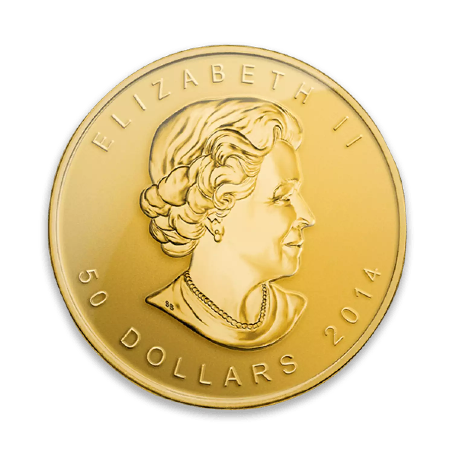 The coin was introduced in 1979. At the time the only bullion coin was the Krugerrand, which was not widely available because of the economic boycott of apartheid-era South Africa. Coins minted between 1979 have a gold purity of at least .999. In 1980-1982, both 999 pure coins and 9999 pure gold coins were minted and beginning in 1983 the RCM switched to exclusively minting 9999 gold coins. The 1 oz Canadian Gold Maple Leaf is legal tender with a face value is $50 CAD (Canadian Dollars). The market value of the metal varies, depending on the spot price of gold as traded on both the NYMEX and other international commodity exchanges. Having a .9999 millesimal fineness (24 carats), in some cases .99999, the coin is among the purest official bullion coins on the planet. The millesimal fineness scale typically refers to the minimum guaranteed purity on a fraction of 1. i.e. a purity of .9999 would mean its minimum purity is .9999/1. The standard version has a weight of 1 troy ounce (31.103 grams). Other sizes and denominations include 1 gram, 1/25 oz. ($0.50), 1/20 oz. ($1), 1/10 oz. ($5), 1/4 oz. ($10), and 1/2 oz. ($20).
