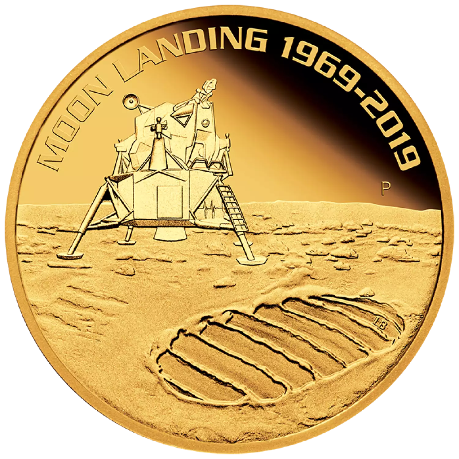 The 2019 1 oz Australian Perth Mint Gold 50th Anniversay of the Moon Landing is a special release from the Perth Mint. This proof gold coin has a beautiful design that commemorates this historic event which captured the world's imagination in 1969. This bullion coin contains 1 oz of .9999 fine Gold. The Obverse features the Raphael Maklouf effigy of Her Majesty Queen Elizabeth II. The Reverse depicts the lunar landing module along with the imprint of Neil Armstrong's "first step" on the moon's surface. For anyone who wants both a collectible and beautiful gold coin as well as a solid investment in gold bullion, this gold coin is a great choice.