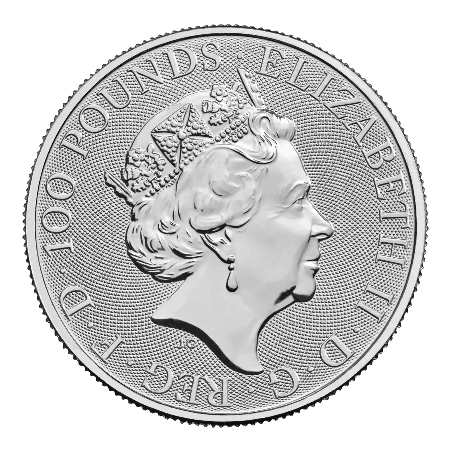 David Lawrence has captured the mythical yale on the reverse of the coin, with a chainmail surface animation background texture providing additional security. The obverse of the coin features the fifth definitive coinage portrait of Her Majesty The Queen by Jody Clark.