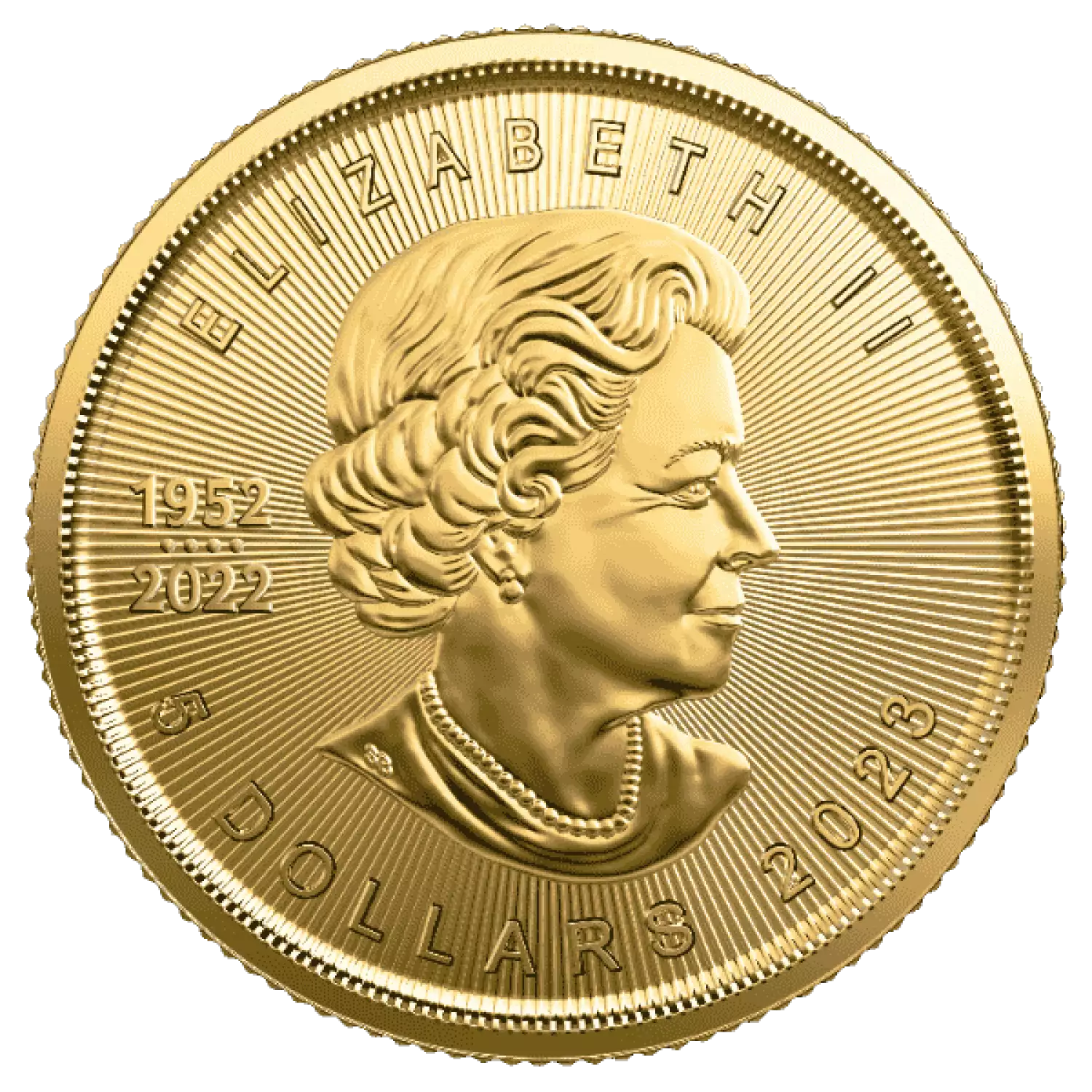 The 2023 1/10 oz Canadian Maple Leaf gold coin is the 41st release of the 1/10 oz Canadian Gold Maple Leaf coin. It contains 1/10 oz of .9999 fine Gold. The weight and purity of this coin is guaranteed by the Royal Canadian Mint. These coins are highly popular among investors and collectors.