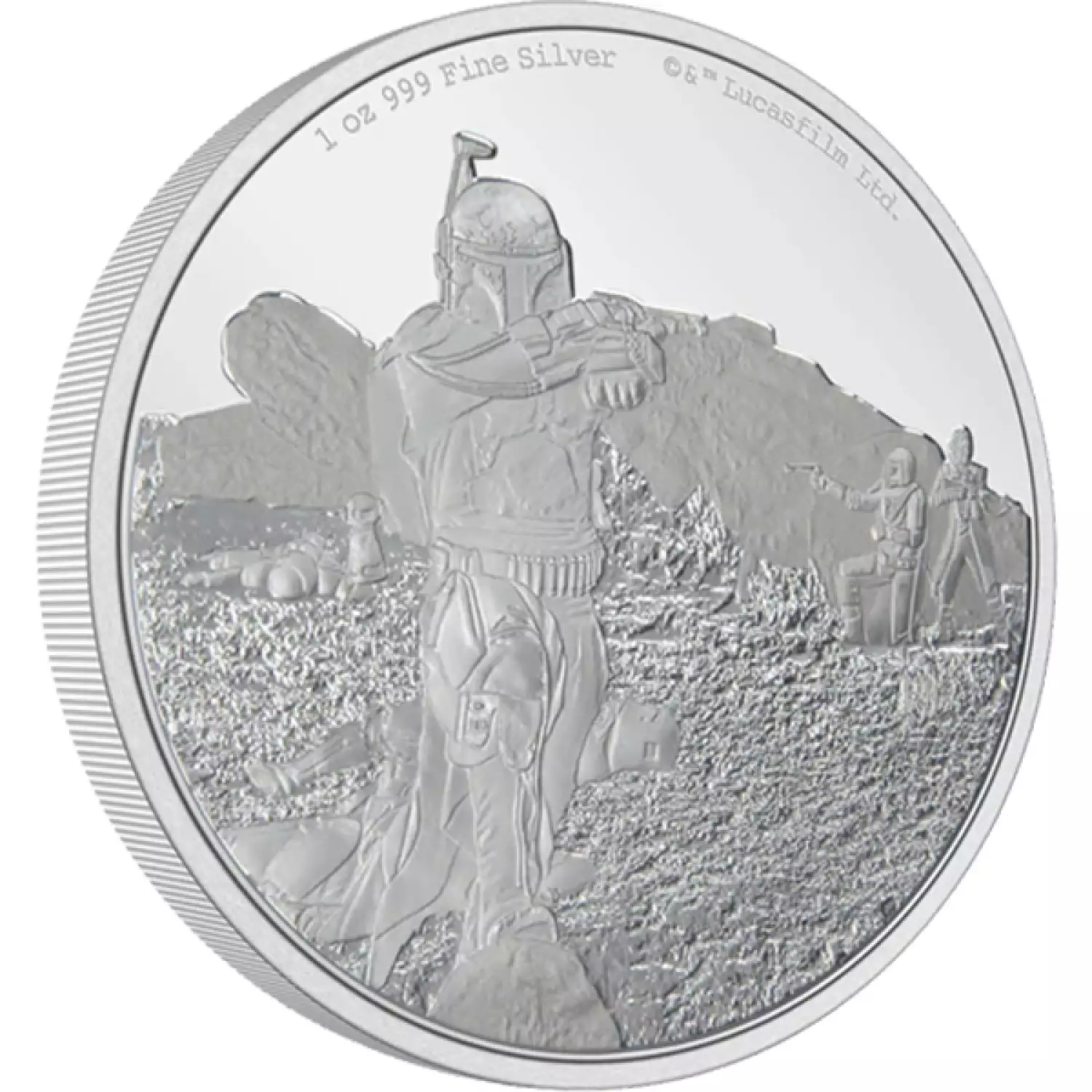Made of 1oz pure silver, this coin features Boba Fett™ in the deadly battle against the Stormtroopers, as seen in the Lucasfilm series The Mandalorian™. This piece has been intricately engraved and includes some relief, mirror-finish and frosted elements, enriching this incredible design. Turn to the obverse for the Ian Rank-Broadley effigy of Queen Elizabeth ll, confirming it as legal tender.