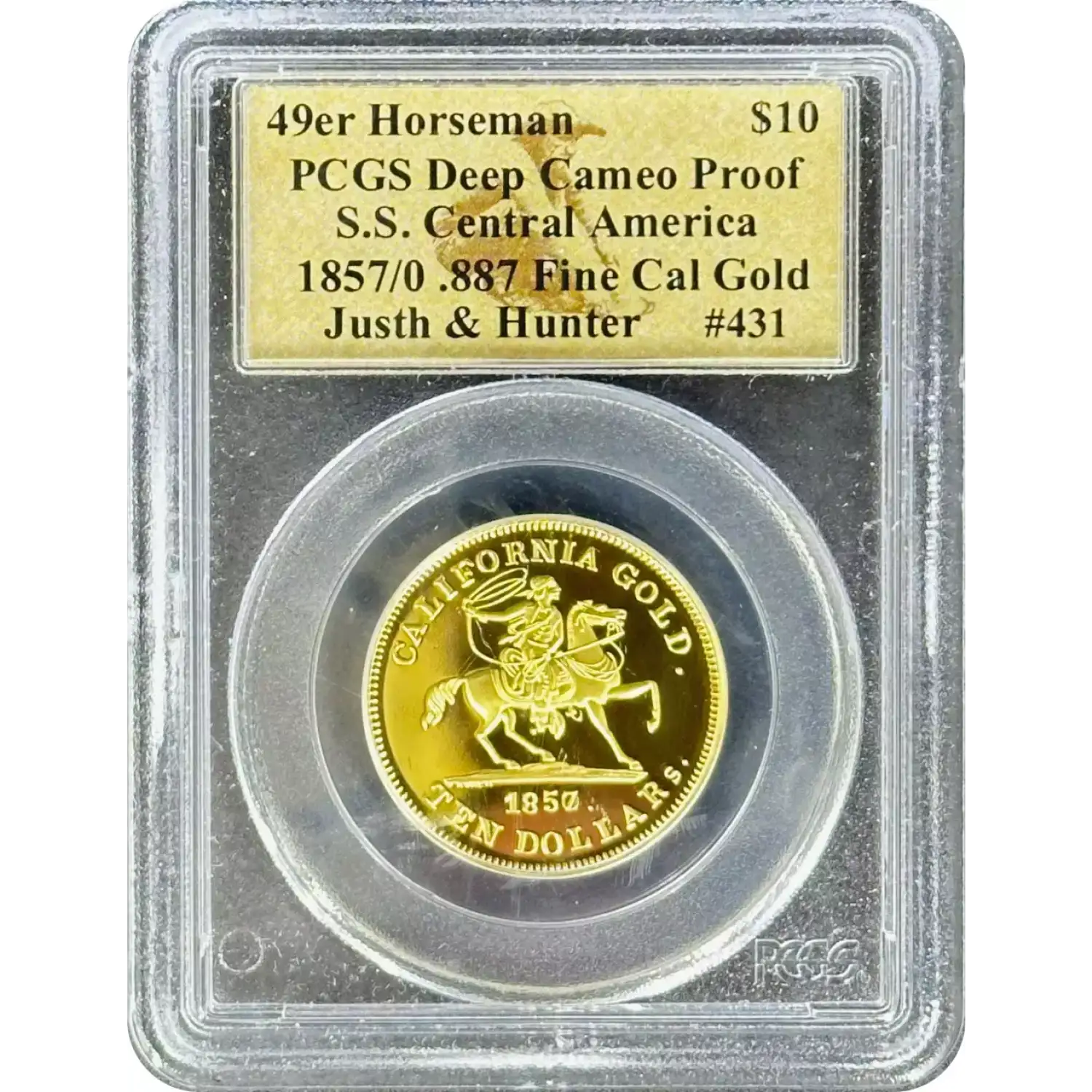 The 1857/0-dated $10 Gold "49er Horseman" are all struck as Cameo Proof coins and were minted in 2002 by the Royal Canadian Mint, using gold recovered from the S.S. Central America shipwreck, which sank in 1857 off the coast of North Carolina during a hurricane. These coins are tied to the California Gold Rush and are struck from gold ingots assayed by Justh & Hunter in 1857, recovered in the 1980s by the Columbus-America Discovery Group. Here are the key details: