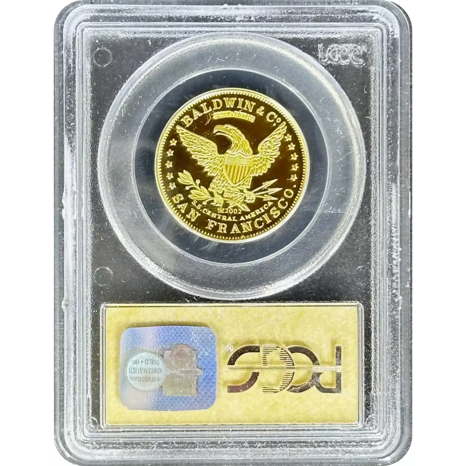 The reverse features a heraldic eagle with a shield, similar to official U.S. gold coins, surrounded by inscriptions "Baldwin & Co" and "Justh & Hunter" above, and "S.S. Central America" and "San Francisco" below.