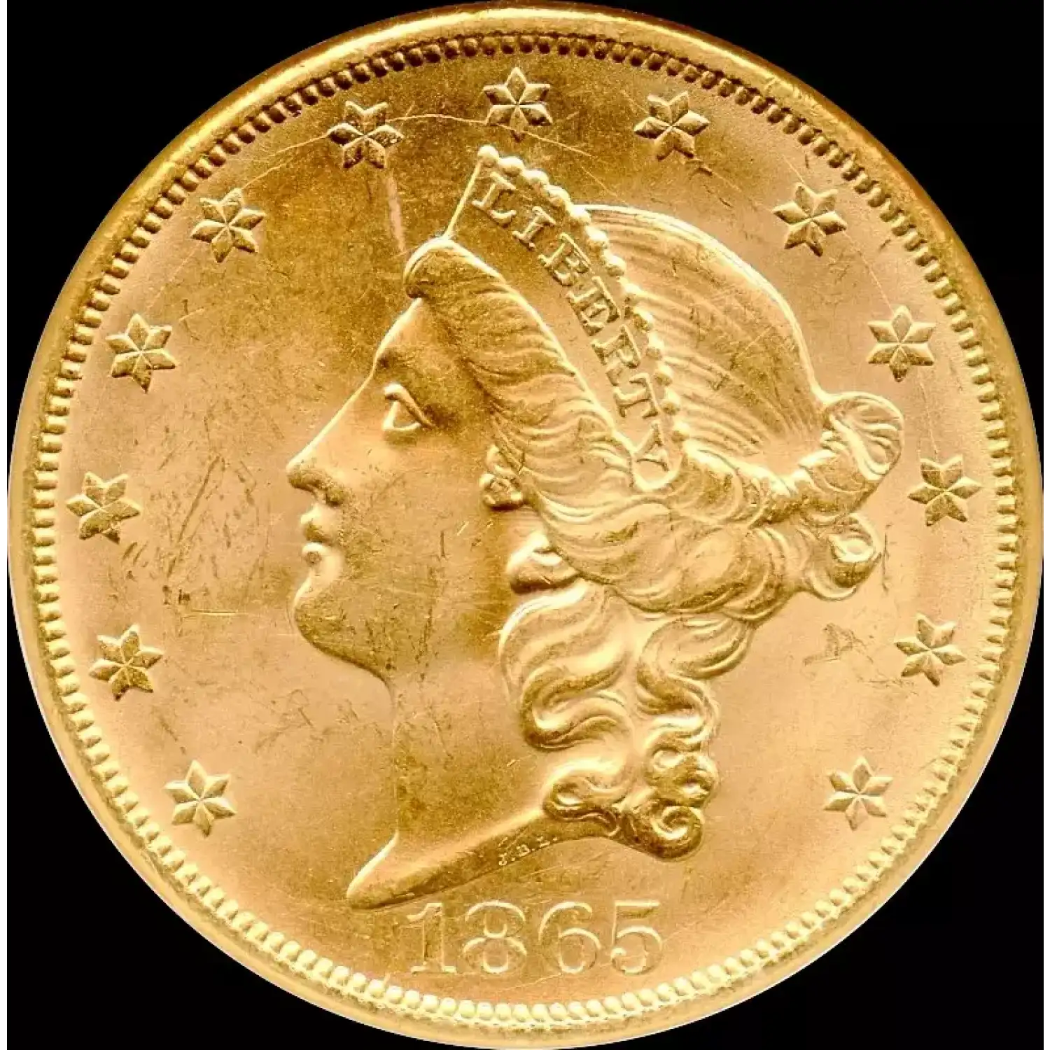 Ex.SS Republic. The 1865 $20 Liberty Head gold coin, minted at the San Francisco Mint and one of finest of the 253 examples recovered from the SS Republic, is a numismatic delight. Struck during the Civil War’s final year, this James B. Longacre design (1849-1907) features Liberty with a coronet inscribed "LIBERTY" on the obverse and a heraldic eagle on the reverse, symbolizing peace and strength. The "S" mintmark identifies its San Francisco origin, where 793,000 were minted in 1865. NGC-certified as Choice Mint State-63, it retains strong luster and sharp details despite its shipwreck history. The SS Republic sank in a hurricane on Oct. 23, 1865, off Georgia, carrying “$400,000 in specie meant by Northern investors to help revive the war-ravaged economy of the South’s largest city,” per the excerpt.