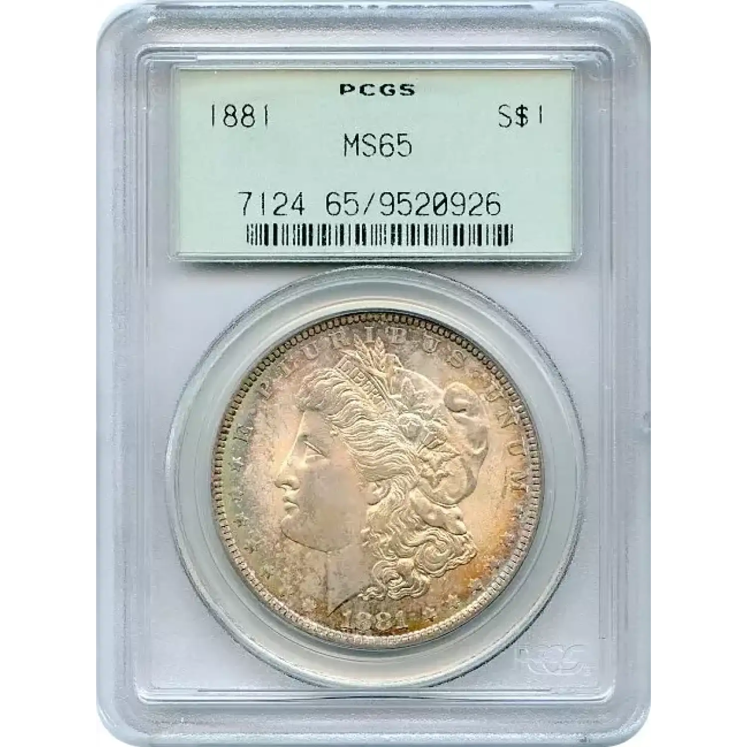 The coin is housed in one of PCGS’s earlier Old Green Holders, the style used from the late 1980s through the 1990s. These holders are familiar to and desired by many collectors. This is a solid, attractive, and original 1881 Morgan in a respectable gem grade.