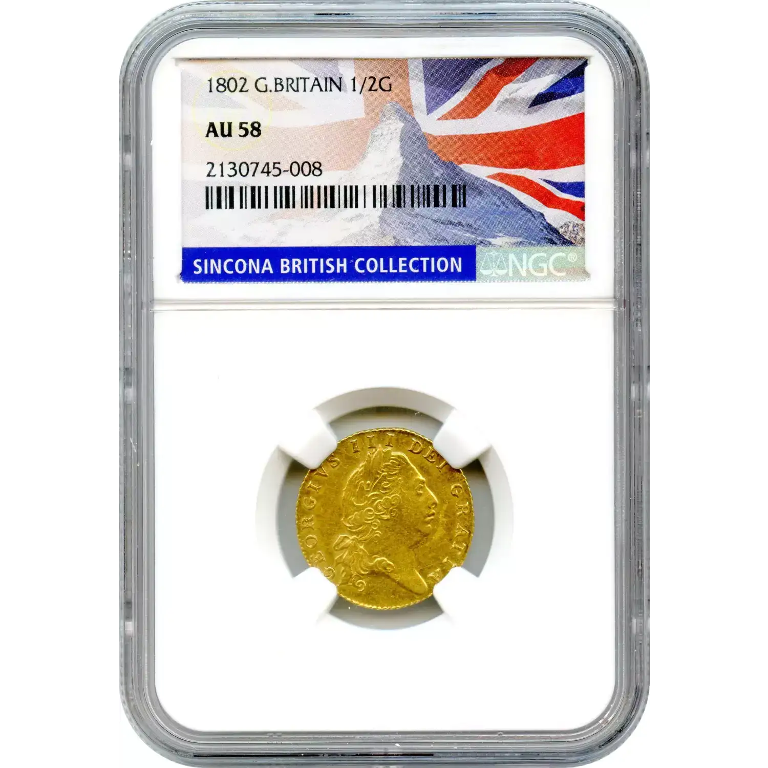 The 1802 Great Britain gold half guinea was struck during the final years of a denomination that had played a central role in British commerce since the Restoration. Struck during the reign of George III, the half guinea reflects a monetary system still rooted in gold, even as Britain faced the financial pressures of the Napoleonic era. By the early nineteenth century, gold coinage carried both practical and symbolic importance, embodying stability at a time of global conflict.