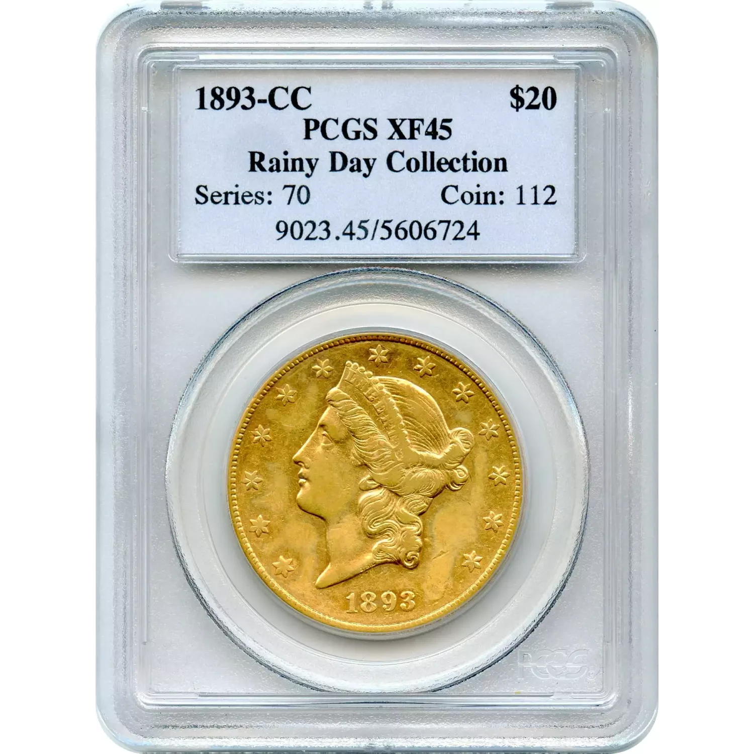 The 1893-CC $20 Liberty Head Double Eagle, graded PCGS XF-45, stands as the final gold double eagle struck at the legendary Carson City Mint. Minted in a mere 18,402 pieces, this coin closed a chapter that began in 1870, when the remote Nevada facility first produced the iconic $20 gold pieces that fueled America’s frontier economy. Its sharply detailed XF-45 surfaces retain bold legends and a softly luminous sheen, testifying to honest circulation through the rugged Old West.