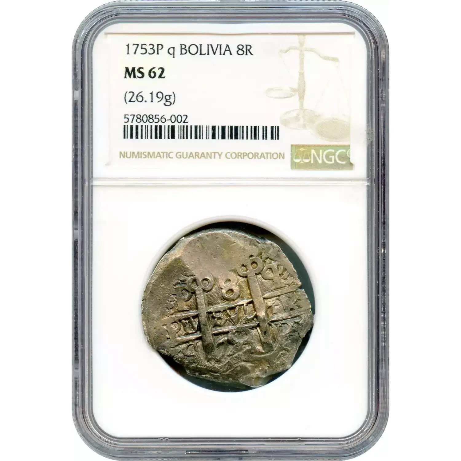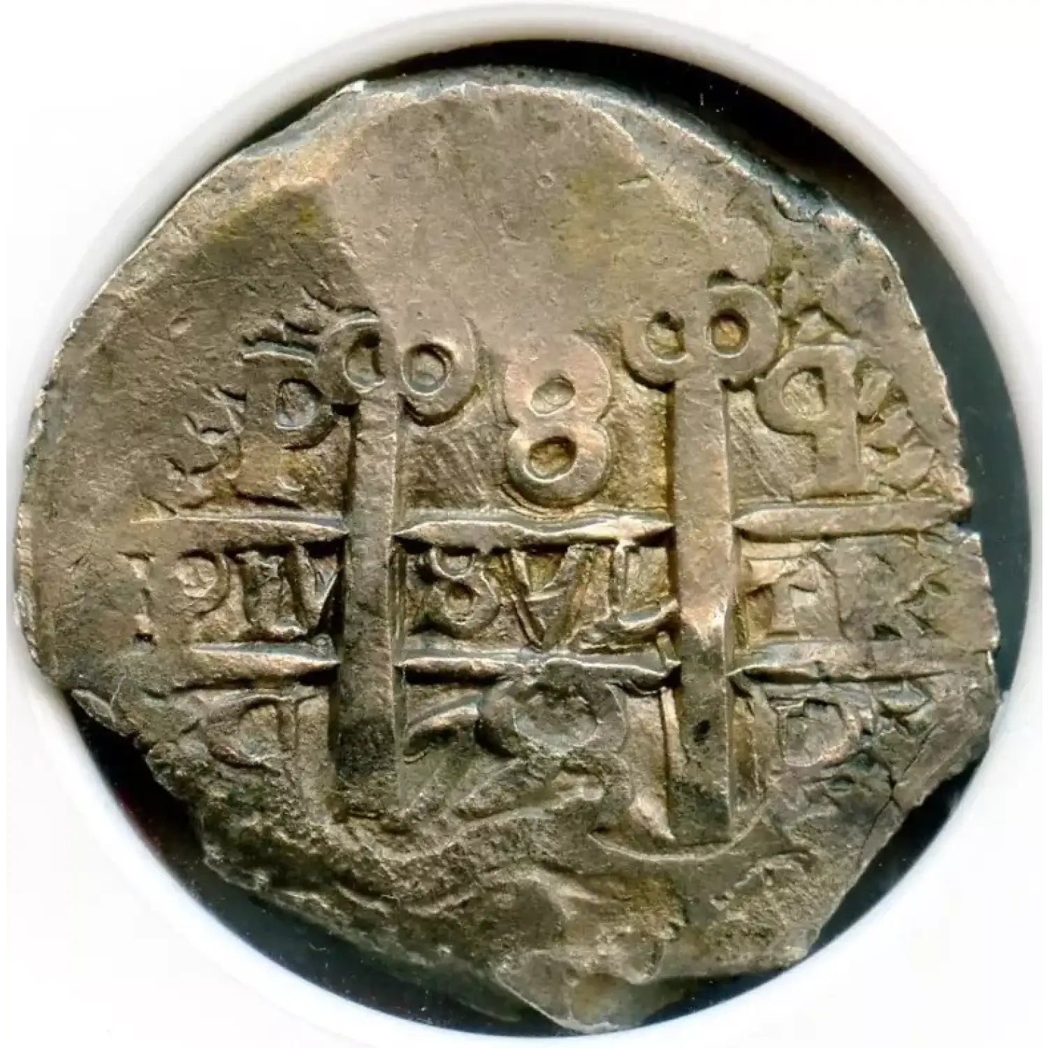 Obverse: Features a crowned quadrilobe with the quartered cross of Jerusalem and arms of Castile and León, surrounded by an abbreviated Latin legend, likely “FERDINANDVS VI D G HISPAN ET IND REX” (Ferdinand VI, King of Spain and the Indies). The assayer’s initial “q” (e.g., Domingo de Quintanilla y Lares) and denomination “8” may appear, depedning upon how well struck the coin is and it's present state-of-preservation. Reverse: Shows two crowned pillars of Hercules over waves, with “PLUS ULTRA” (Further Beyond) on banners. A three-line inscription includes the mintmark “P,” assayer “q,” and “8,” within a beaded circle and legend “VTRAQUE VNUM” (Both Are One).