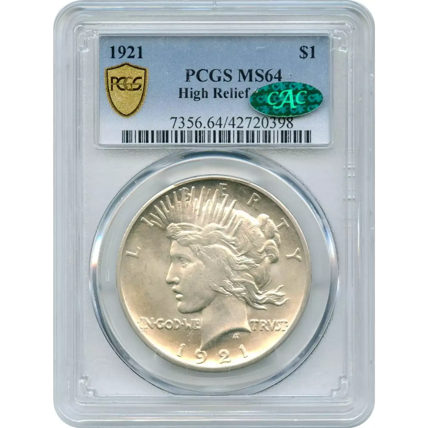 The 1921 $1 Peace Silver Dollar, struck in high relief at the Philadelphia Mint, marks the inaugural issue of this iconic series, designed by Anthony de Francisci. The high-relief strike, unique to this year, creates stunning detail but proved impractical for mass production, leading to lowered relief in subsequent years.