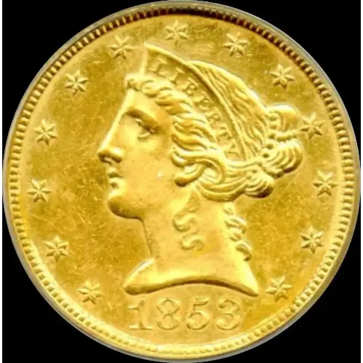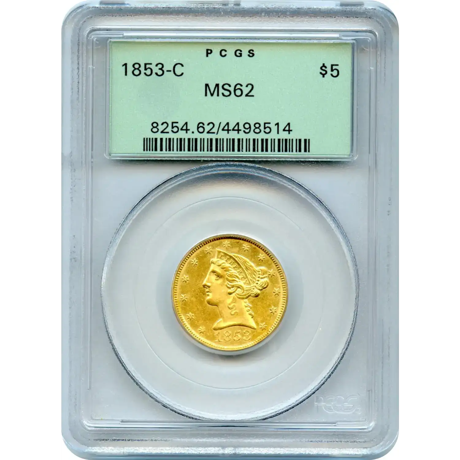 This MS62 example has light contact marks and features attractive luster. Please look at the images provided of this beautiful honey-yellow coin. It is estimated that only 650 1853-C Half Eagles exist today. Of those, there are 3 graded MS62 by PCGS, with a mere 3 finer. Collector’s Universe (CU) gives this issue a price of $20,000. Therefore, when you purchase this rare specimen from AUCM, you will save more than $4,000 off the CU price! (Not yet sent to CAC for further endorsement.)