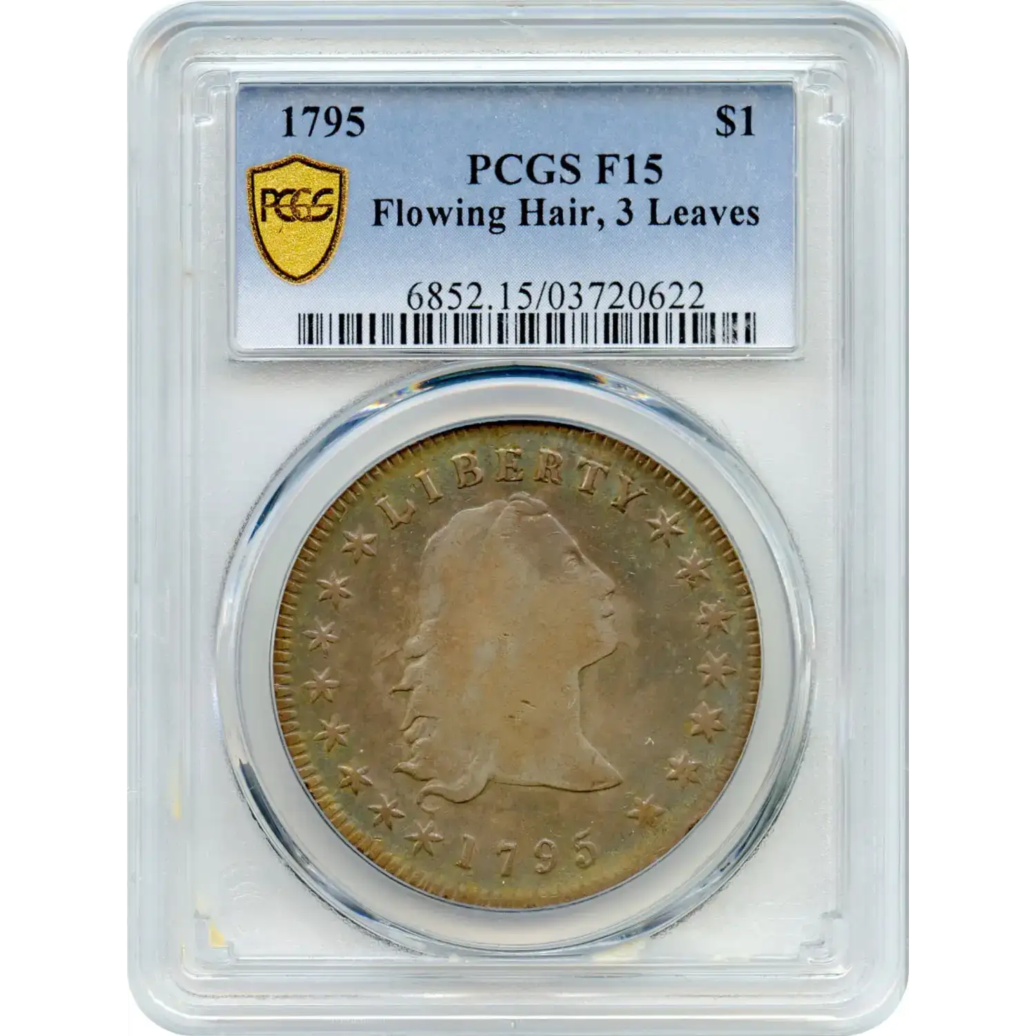The 1795 $1 Flowing Hair Silver Dollar, graded PCGS F-15 (BB-27, 3 Leaves), is a cornerstone of early American coinage. Designed by Robert Scot, it showcases Liberty with flowing hair on the obverse and an eagle within a wreath on the reverse. PCGS has graded 5 as F15 with 58 finer. PCGS states that the mintage for BB-27 was 16,029.