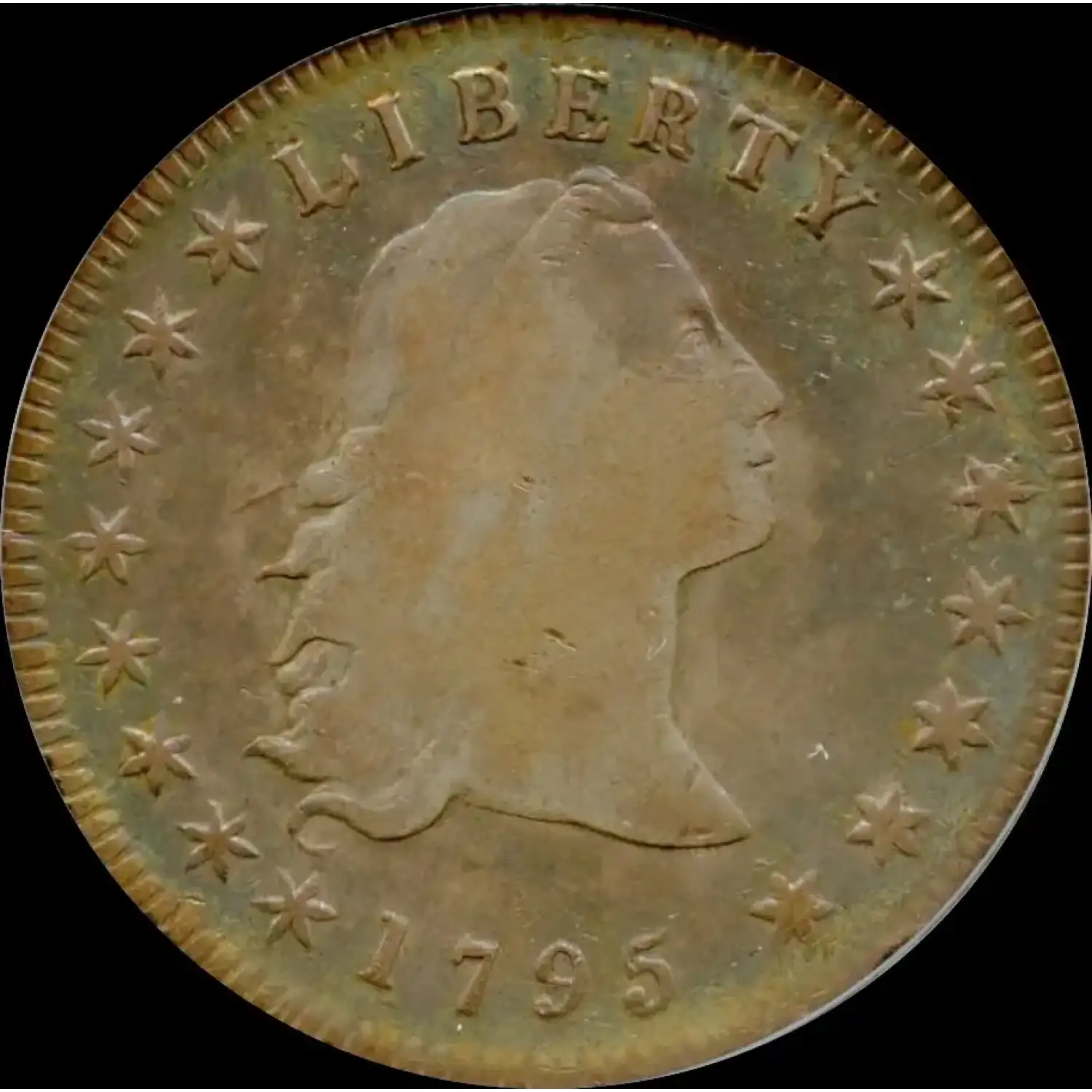 Ron Guth writes, “BB-27 is one of several varieties of 1795 Silver Dollars that comes occasionally with a silver-plug at center. Experts believe the center plug was used to bring an underweight planchet up to the government standard. Upon striking, the plug was smashed and became an integral part of the coin, though sometimes a thin seam can be seen around much or all of the plug's circumference.”