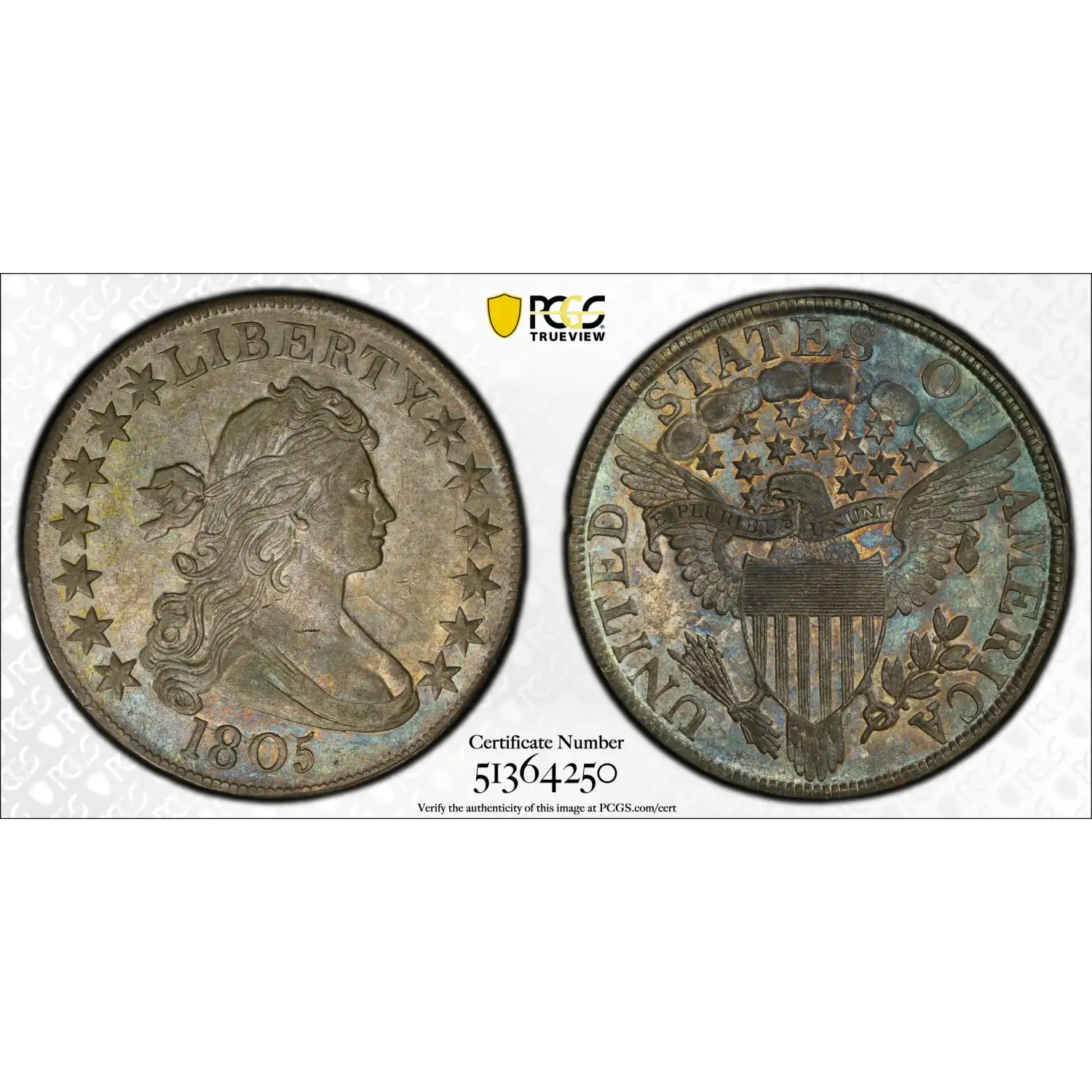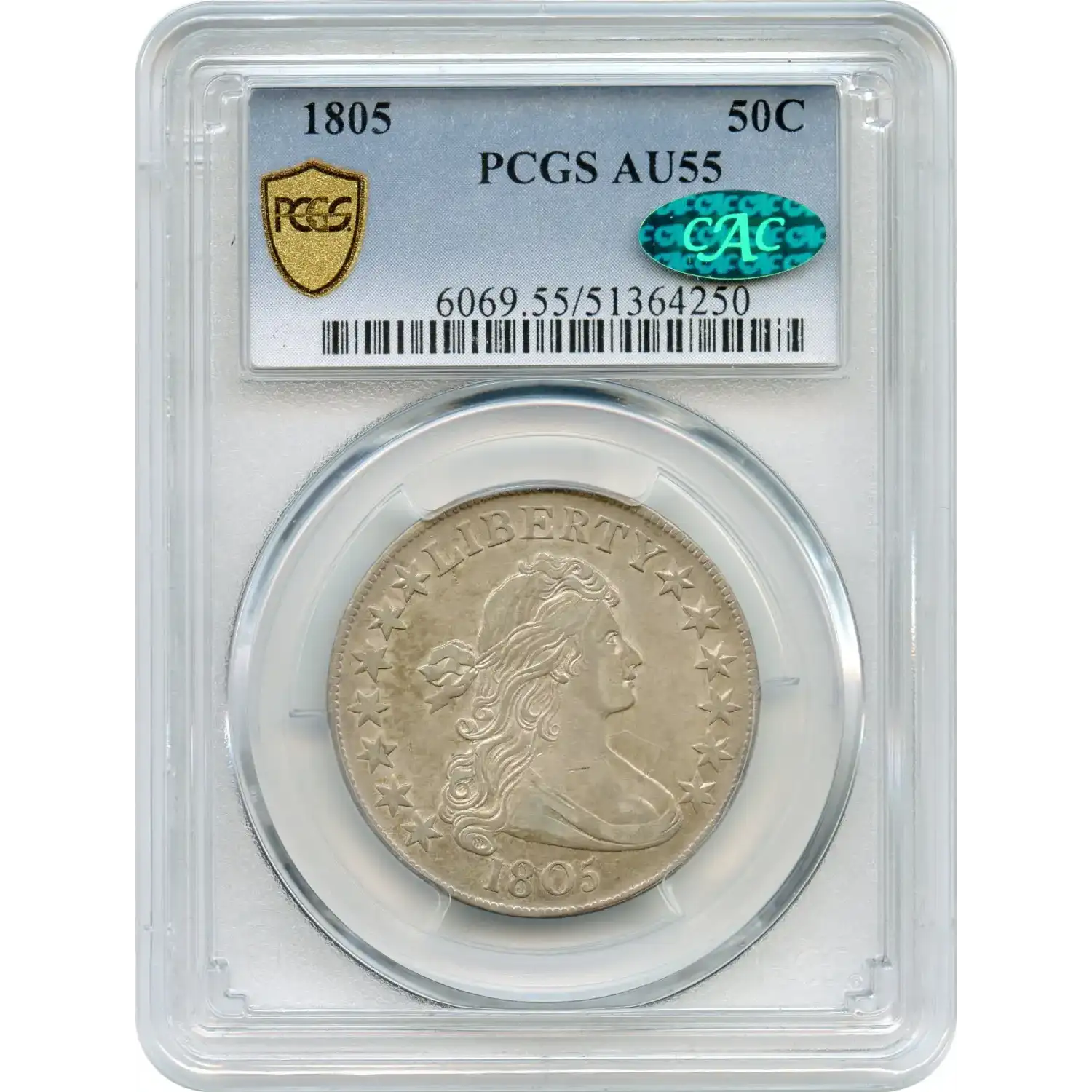 The 1805 Draped Bust Half Dollar represents a pinnacle of early American numismatics, struck at the Philadelphia Mint during the waning years of the Draped Bust series (1796-1807). Designed by Chief Engraver Robert Scot, it features his iconic Liberty draped in flowing garments on the obverse.