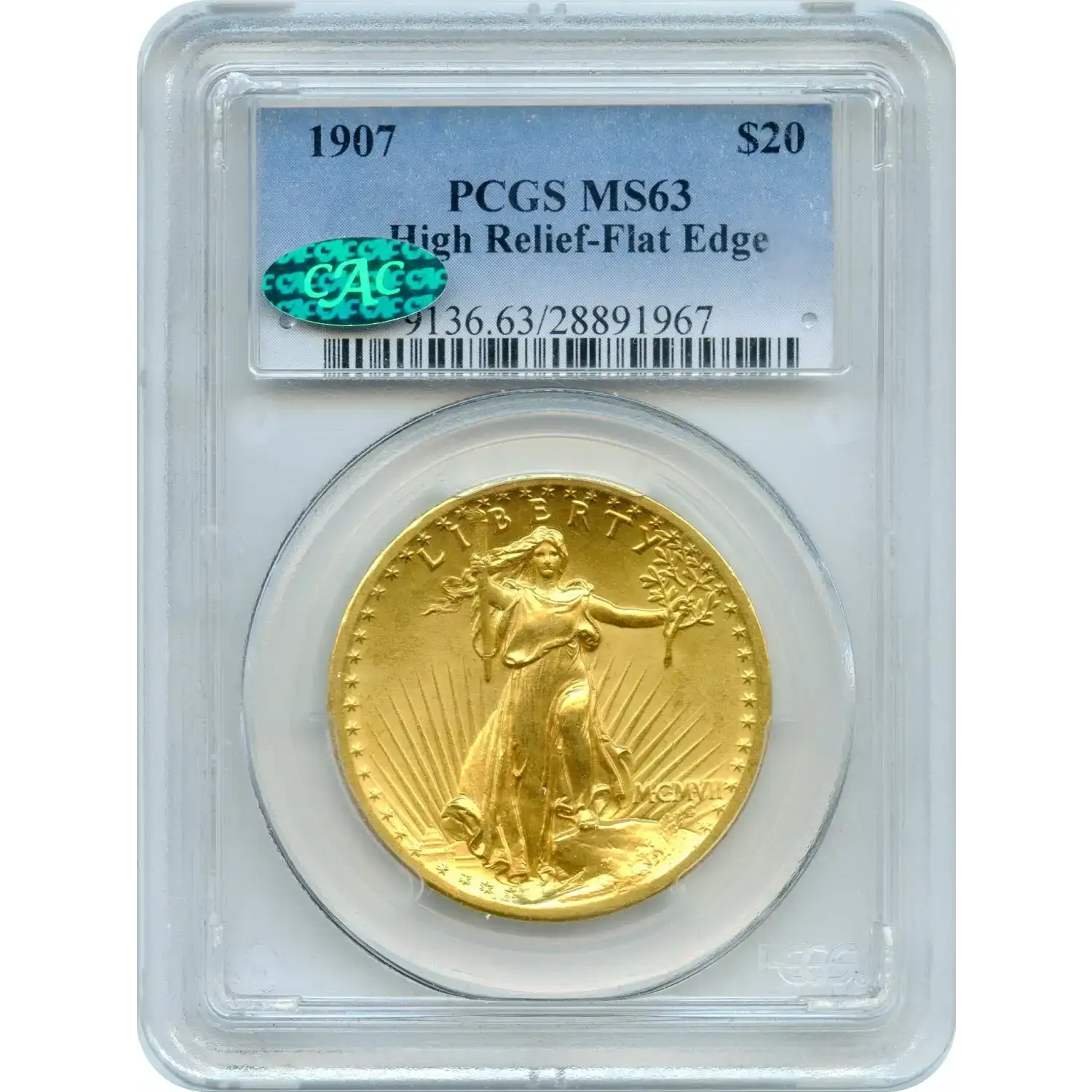 The 1907 $20 Saint-Gaudens Double Eagle, High Relief, Flat Edge, represents a pinnacle of American numismatic artistry. Designed by renowned sculptor Augustus Saint-Gaudens at the behest of President Theodore Roosevelt, it debuted as the first in a series of gold coins meant to evoke ancient Greek masterpieces. The obverse depicts Liberty striding forward with a torch and olive branch, while the reverse features a soaring eagle against a radiant sunburst. Struck in high relief for a sculptural depth, this issue initiated an era of artistic renaissance in U.S. coinage.