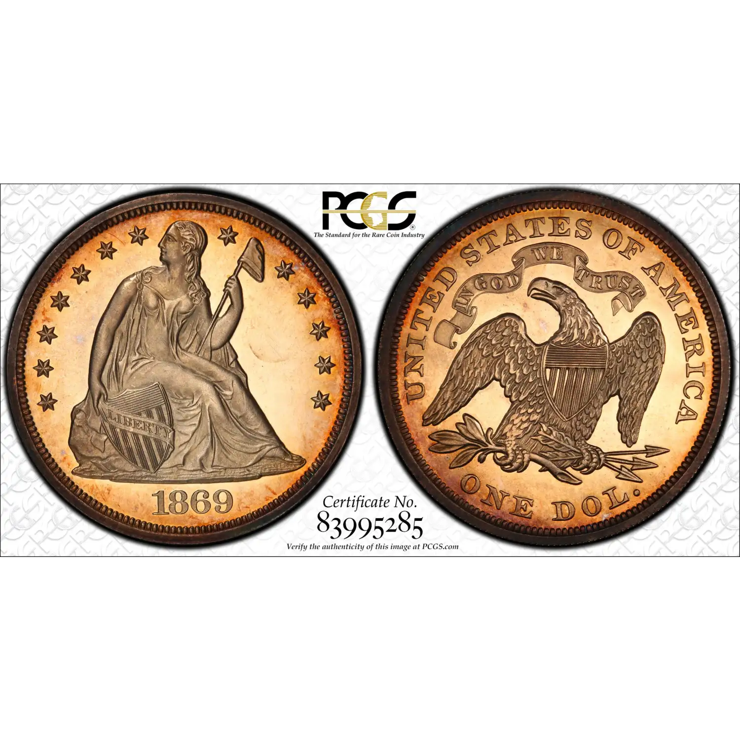 The 1869 Liberty Seated Silver Dollar represents a pinnacle of 19th-century American numismatic art. With a mintage of just 600 examples, this issue features the iconic design by Christian Gobrecht: Lady Liberty seated on a rock, draped in a flowing gown, clutching a shield and pole topped with a Liberty cap. The reverse displays an eagle with arrows and an olive branch, topped by the post-war motto "IN GOD WE TRUST."
