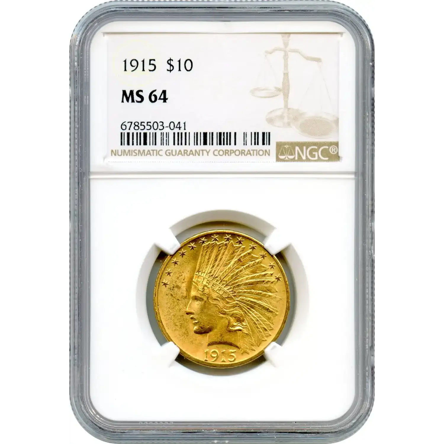 The 1915 $10 Indian Head Eagle stands as a pinnacle of American numismatic artistry, crafted during a transformative era in U.S. coinage. Designed by Augustus Saint-Gaudens, this eagle embodies the numismatic artistic renaissance of 1907 to 1921. NGC has graded 538 as MS64 with 252 finer. The NGC Price Guide values this issue at $4,950 in MS64. Therefore, you will save over $1,000 off that price when you purchase this coin!