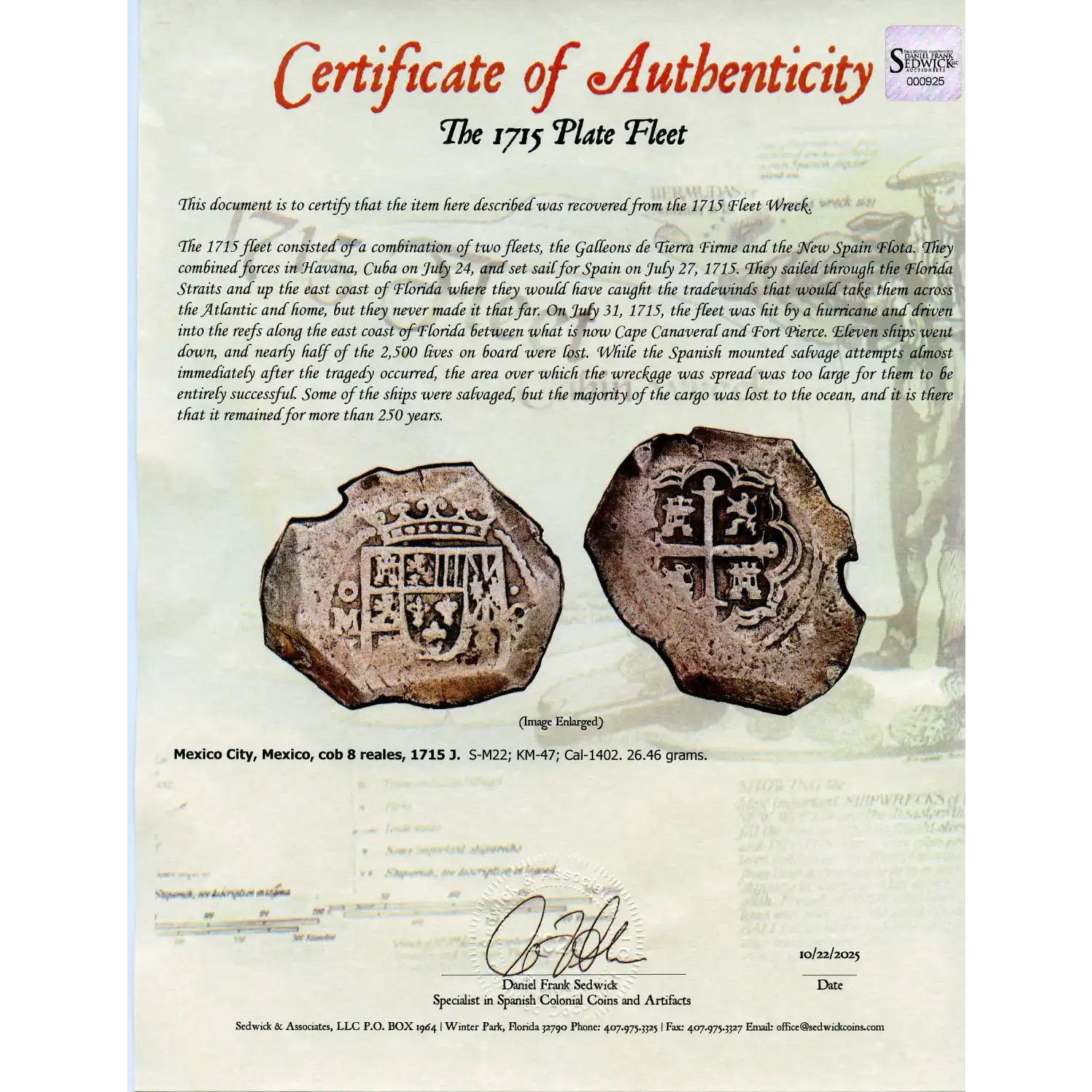 | Variety | Philip V w/1715 Fleet C.O.A. |