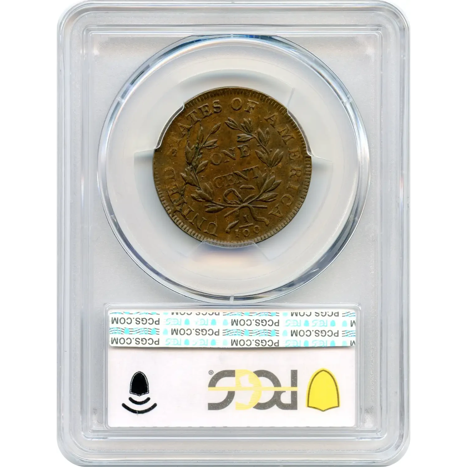 The obverse features Liberty's draped bust facing right, engraved by Robert Scot, with flowing drapery across her shoulders. Distinct to the "First Hair Style," it showcases softer curls without the prominent additions of later hubs, including a subtle curl below and left of the ear. The reverse depicts an elegant wreath encircling "ONE CENT," with "UNITED STATES OF AMERICA" encircling the entire wreath.