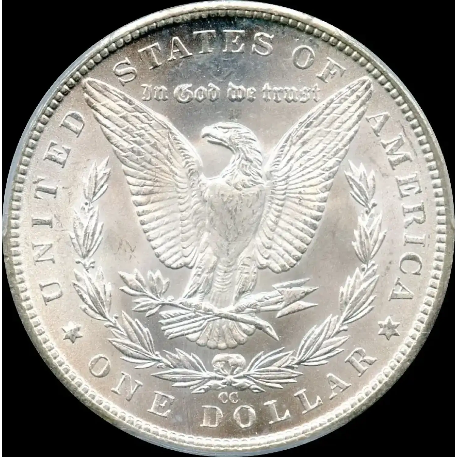 Struck in Nevada's high-desert facility, it bears the iconic "CC" mintmark beneath the eagle on the reverse. Designed by George T. Morgan, the coin features Liberty's profiled portrait crowned with wheat and cotton, symbolizing agricultural abundance, while the reverse showcases a bold eagle clutching arrows and an olive branch.