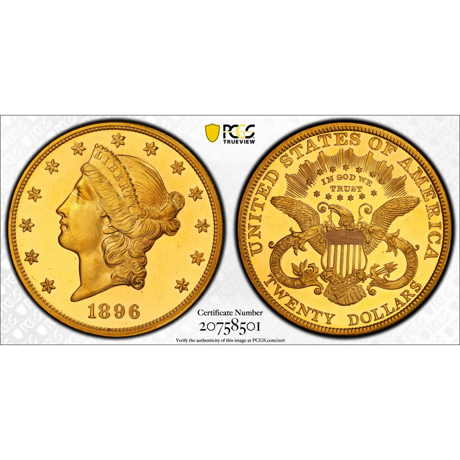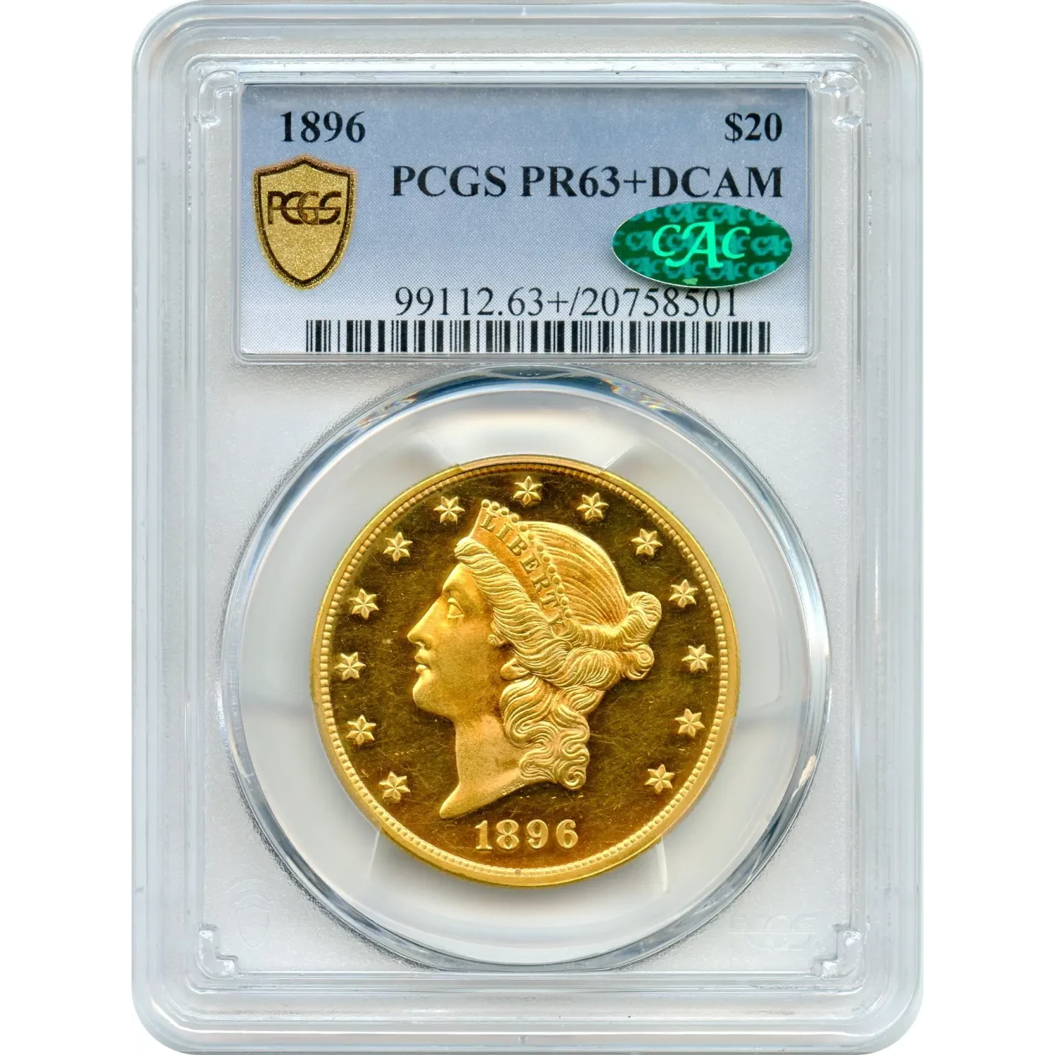 CAC. The 1896 $20 Liberty Head Double Eagle proof is widely regarded as one of the most carefully executed issues of the classic proof era, with many examples displaying striking contrast between deeply mirrored fields and frosted design elements.