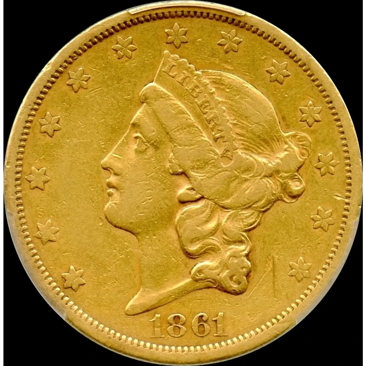 This PCGS XF-40 shows moderate even wear, with Liberty’s hair curls and coronet still well-defined and the diagnostic Paquet lettering crisp and unmistakable. Light abrasions and rim bruises are consistent with brief circulation. Original golden surfaces retain subtle luster in protected areas. It remains a rare survivor of a design that lasted only weeks before being permanently retired.