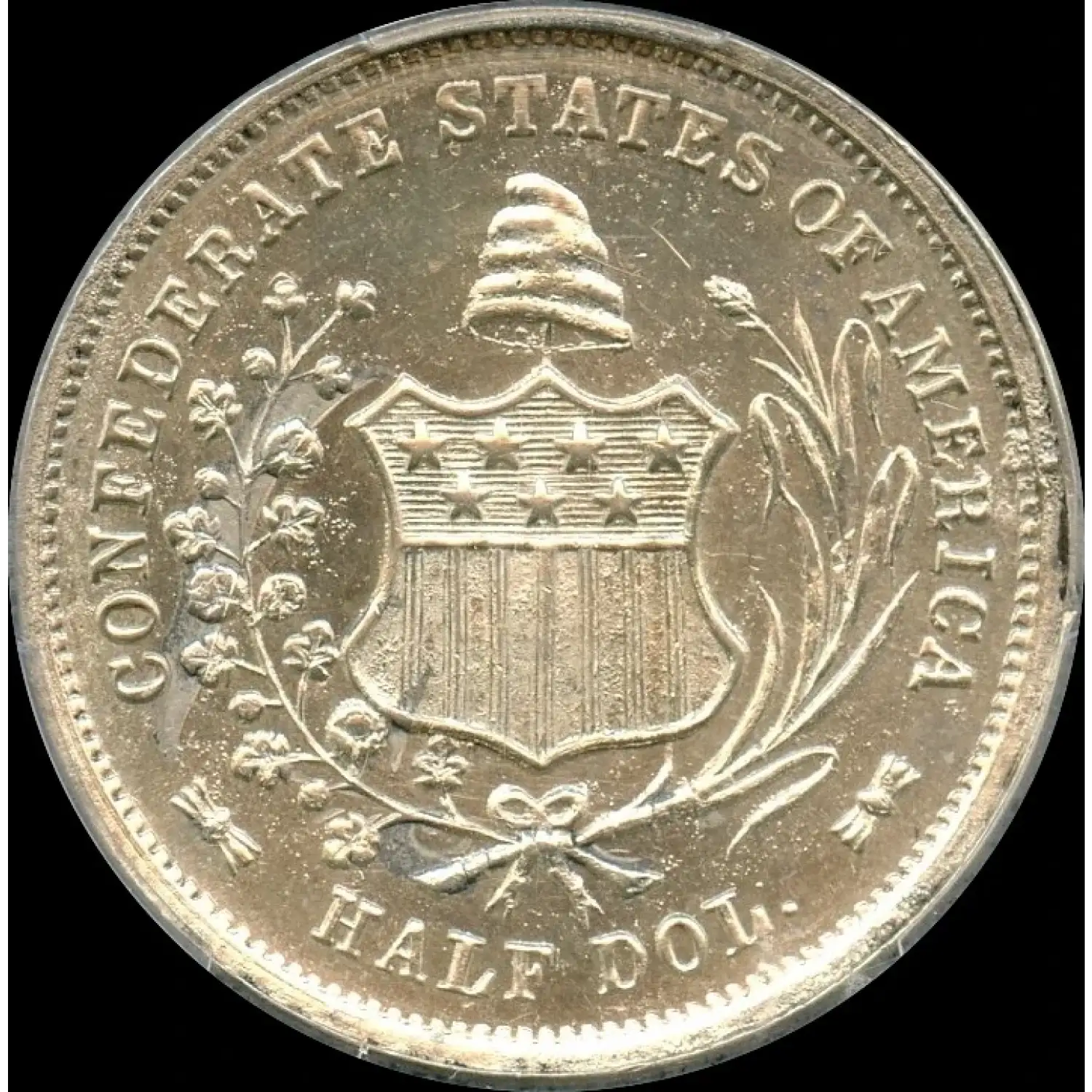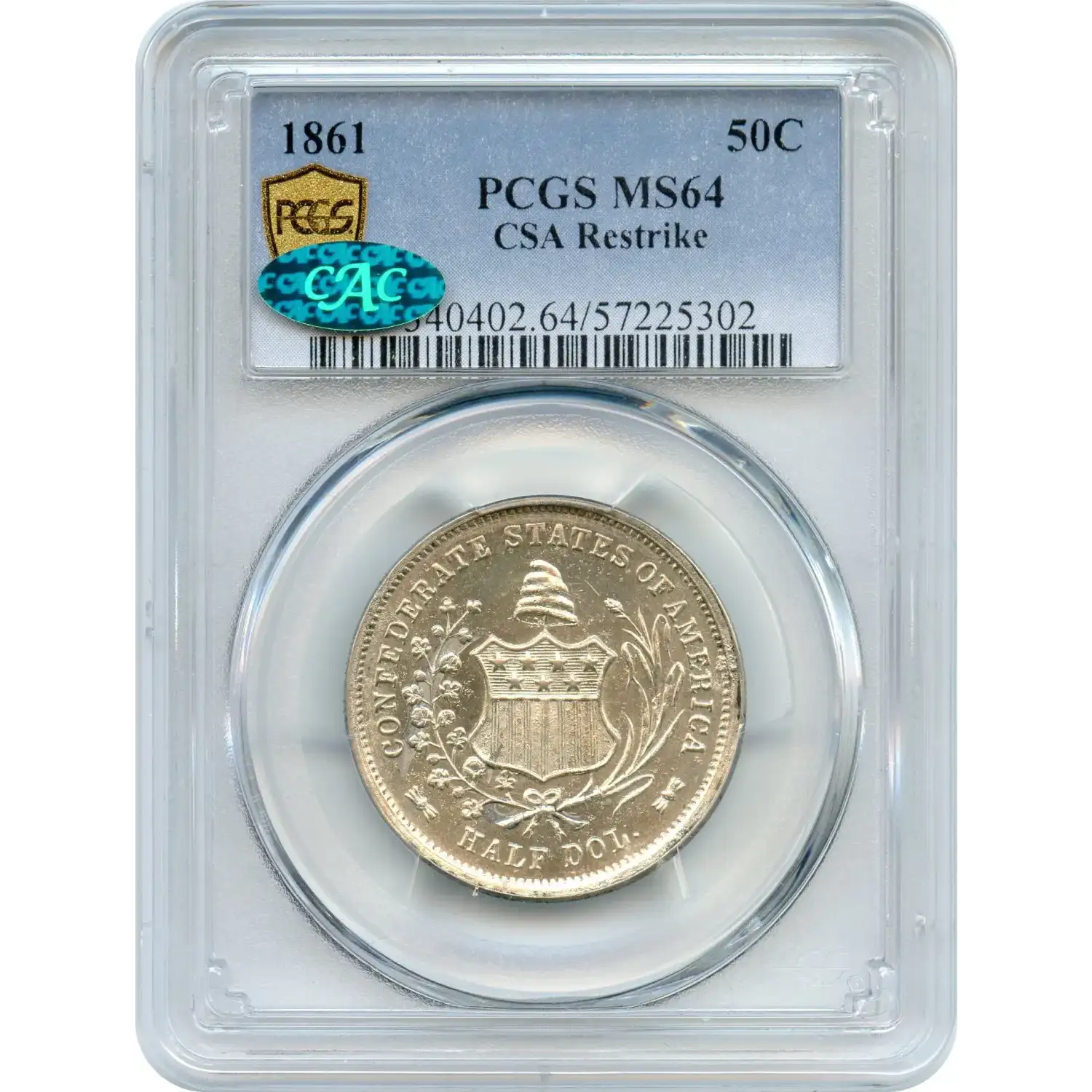 The CAC endorsement confirms exceptional quality within the grade. With only 500 pieces made and far fewer surviving in Mint State, it remains one of the most significant artifacts of the Confederacy available to collectors.