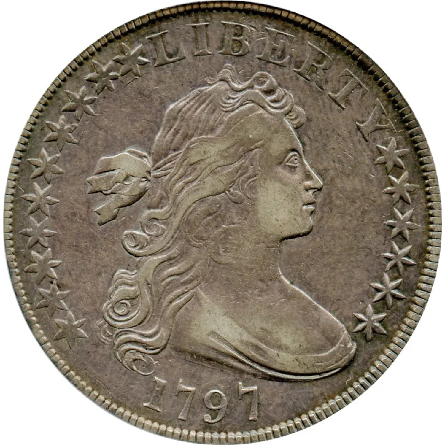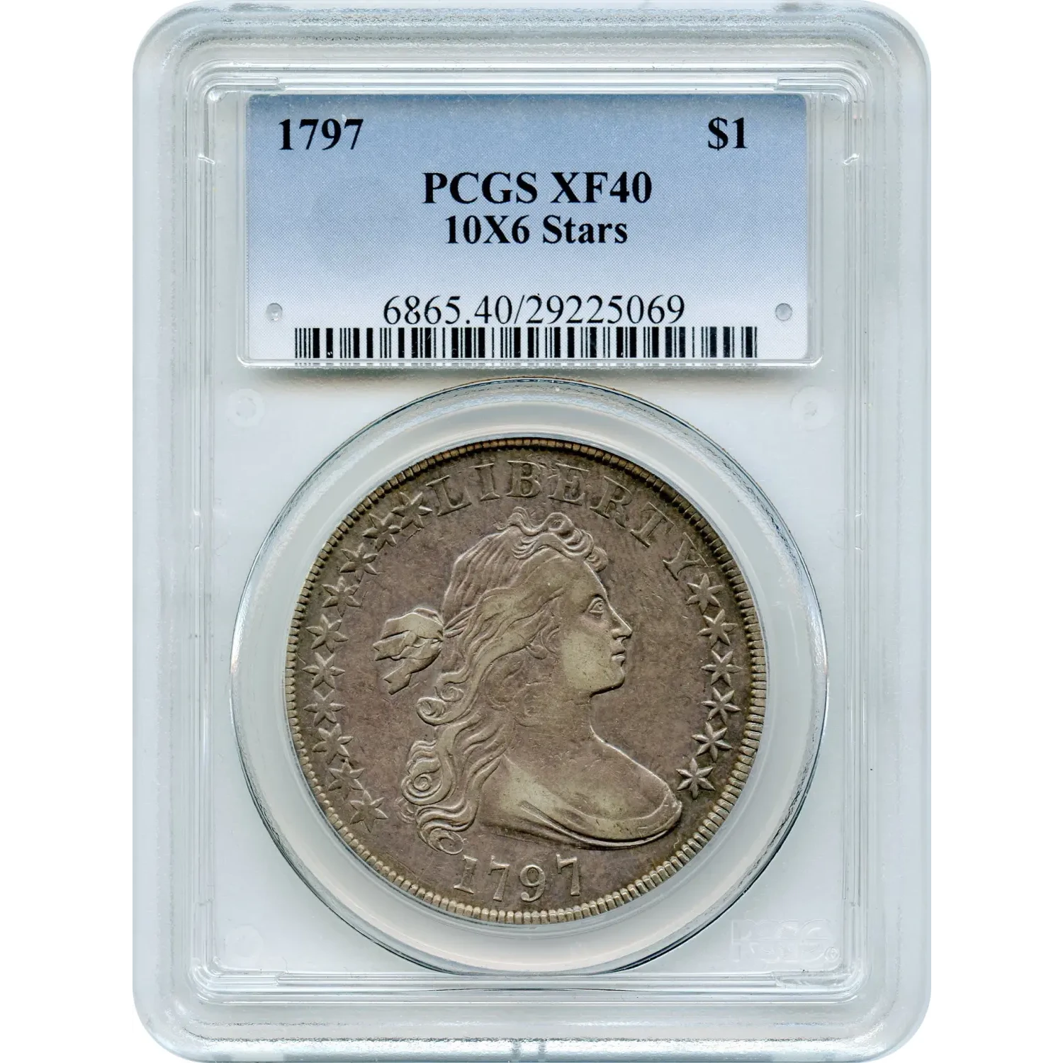 The 1797 Draped Bust silver dollar, BB-71 (10x6 Stars), represents one of the more elusive issues in the early dollar series. With a total mintage of just 7,776 pieces across all varieties, any 1797 dollar is scarce, but the 10x6 Stars configuration stands apart for its notable rarity and distinctive obverse star arrangement.