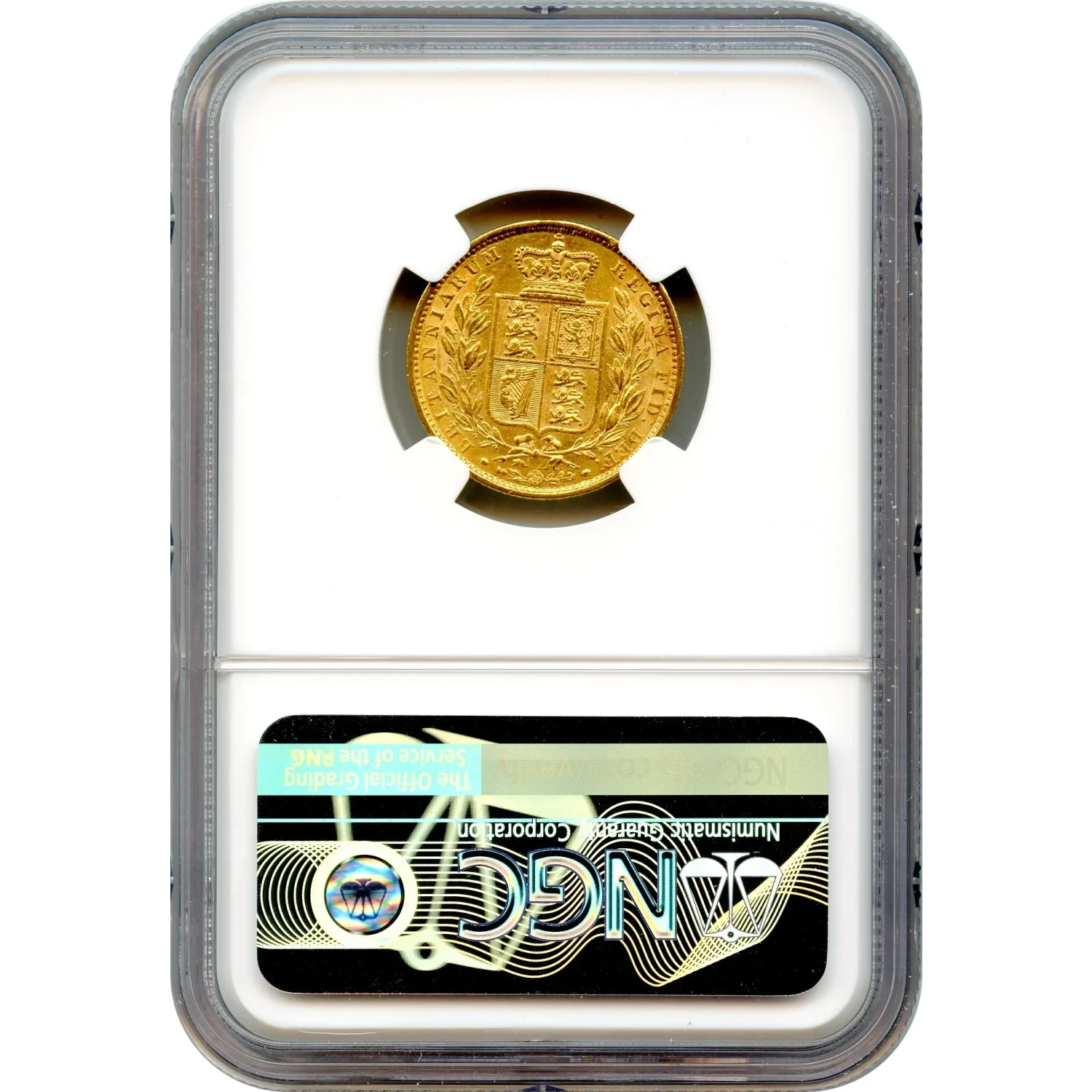 The reverse departs from the familiar St. George and dragon, displaying instead the shield bearing the British coat of arms. This heraldic design emphasizes monarchy, authority, and national identity, making this sovereign feel more official and symbolic—especially fitting for a coin once carried across the seas in service of commerce and empire.