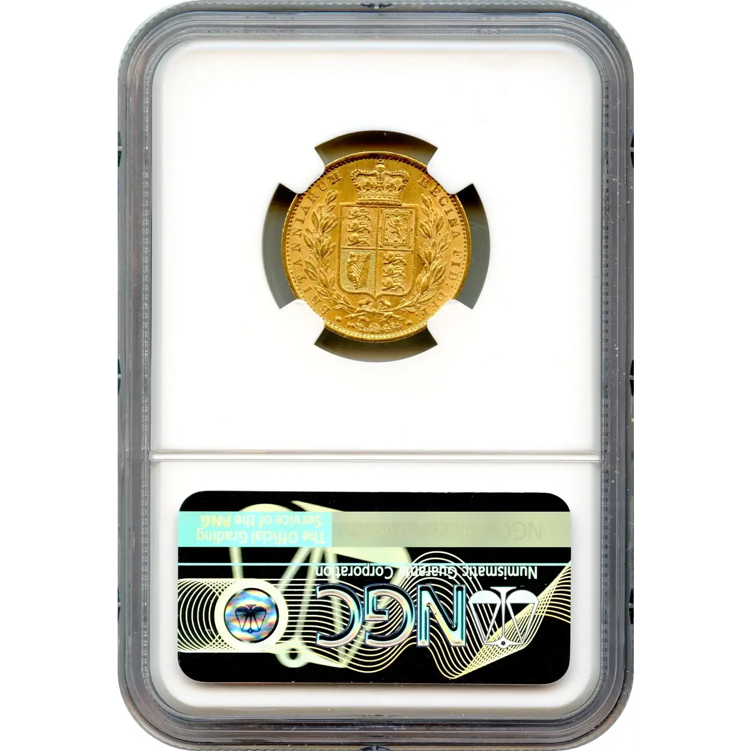 The reverse presents the shield bearing the British coat of arms, a design rooted in heraldic tradition rather than allegory. Seen through the lens of its shipwreck provenance, the familiar shield becomes a symbol not only of national authority, but of endurance—both of the empire that issued it and of this gold coin that survived the sea.
