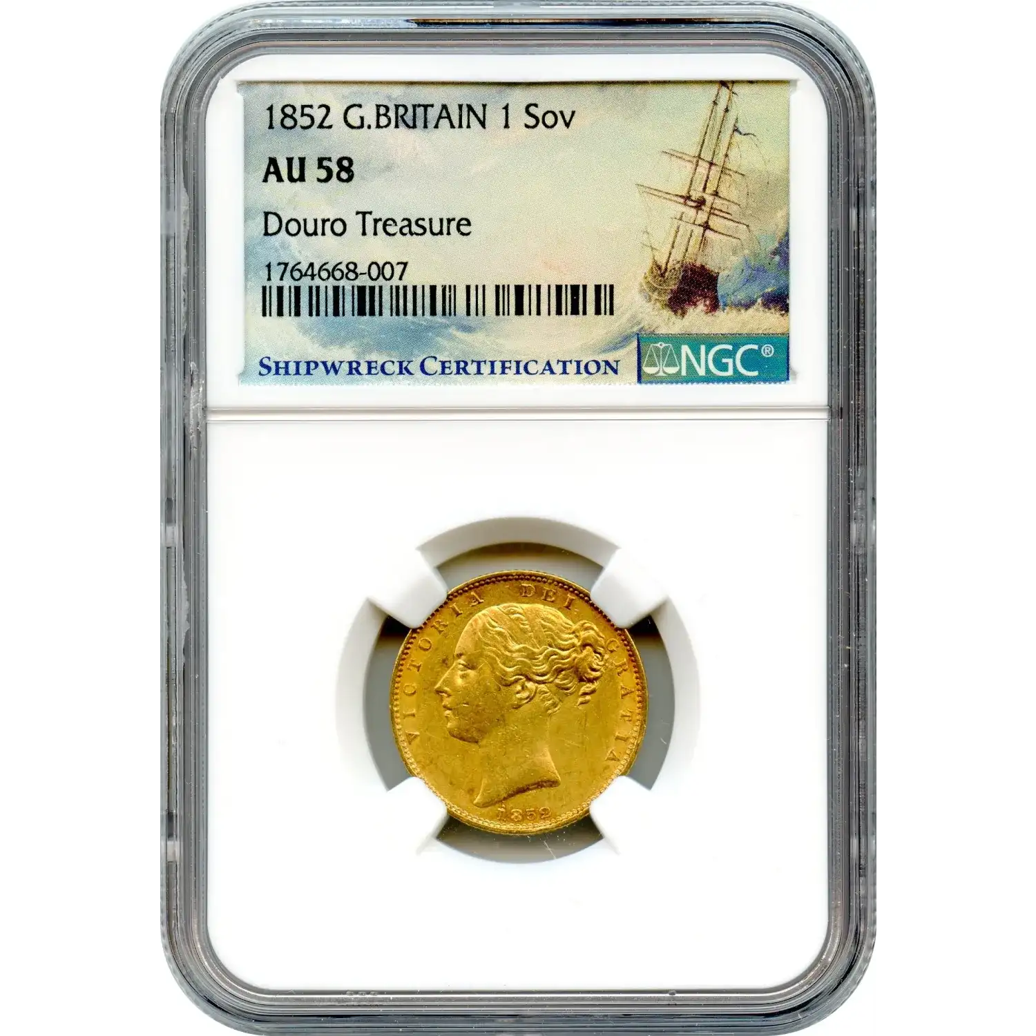 As an Ex. RMS Douro sovereign, this piece stands at the intersection of numismatics and maritime history. It is less a routine gold issue than a recovered artifact, linking Victorian commerce, naval tragedy, and the enduring resilience of gold.