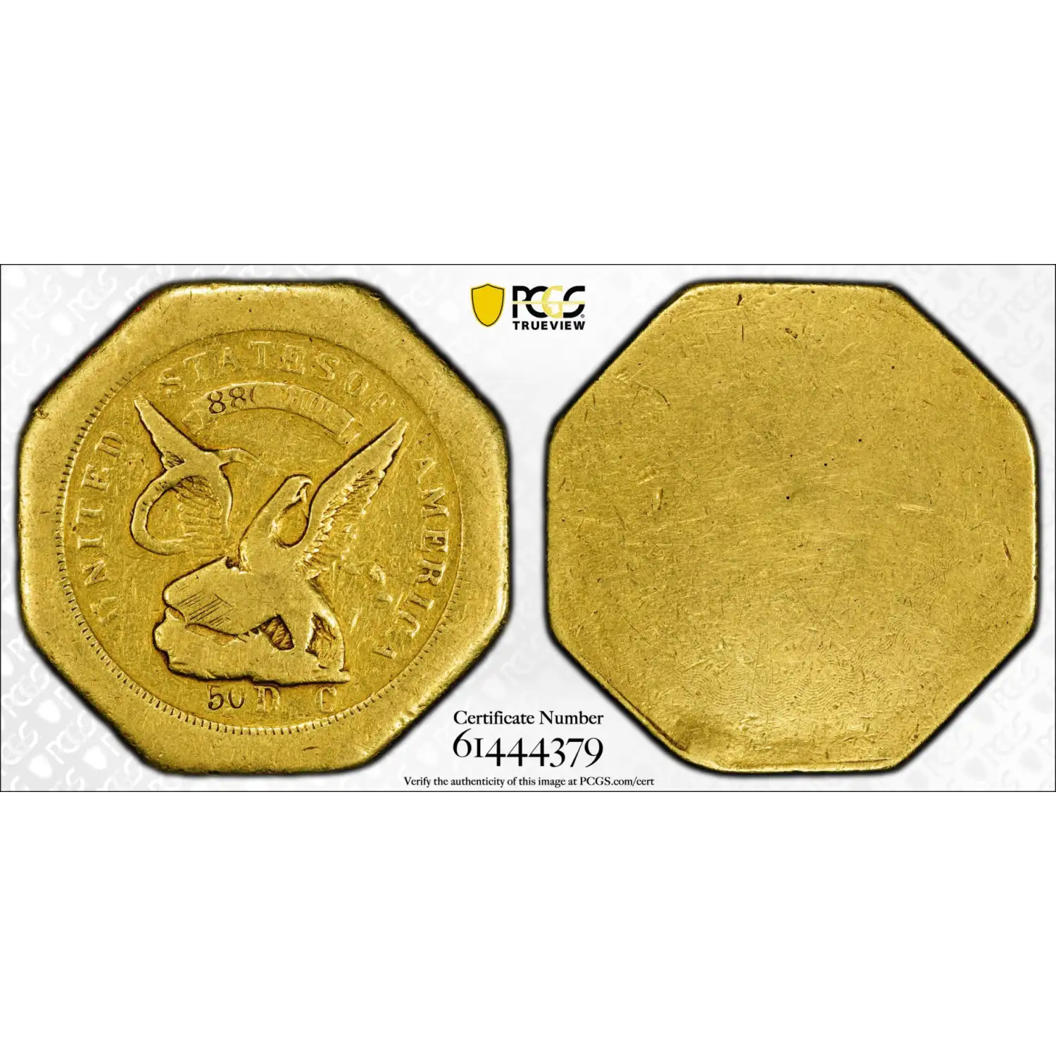 Graded PCGS F-15, this coin is the sole example at that level, with just 68 finer across all grades. Its heavy wear speaks directly to its use during the heady, formative months of the Gold Rush, making it a tangible relic of California’s earliest monetary history.