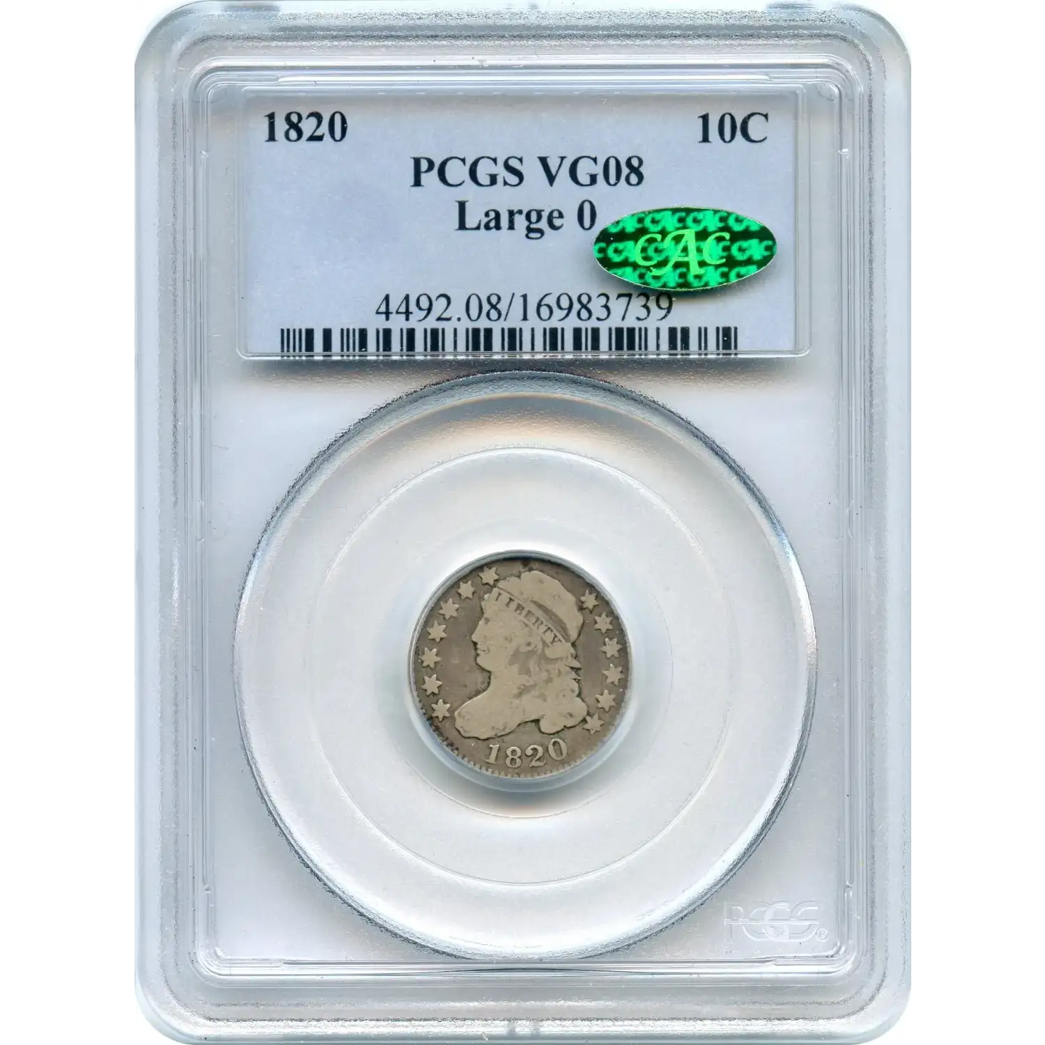 From a population standpoint, this example is scarce but accessible. PCGS has graded just 12 coins as VG-8, with 251 finer certified across all higher grades. At CAC, only 1 example carries approval in VG-8, with 34 finer, highlighting the difficulty of obtaining a CAC-endorsed piece at this level.