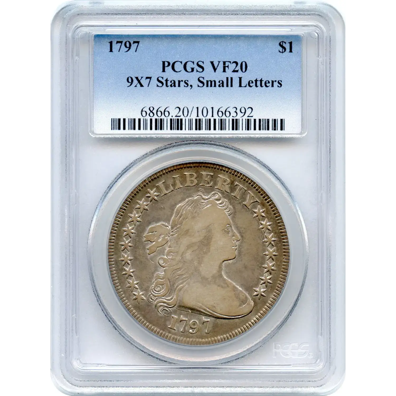 The 9x7 Stars configuration reflects the Mint’s ongoing struggle to balance political symbolism with practical design, capturing an experimental phase in early federal coinage. Combined with the Small Letters reverse, this piece stands as a distinctive and historically rich survivor from the earliest days of the U.S. silver dollar series.