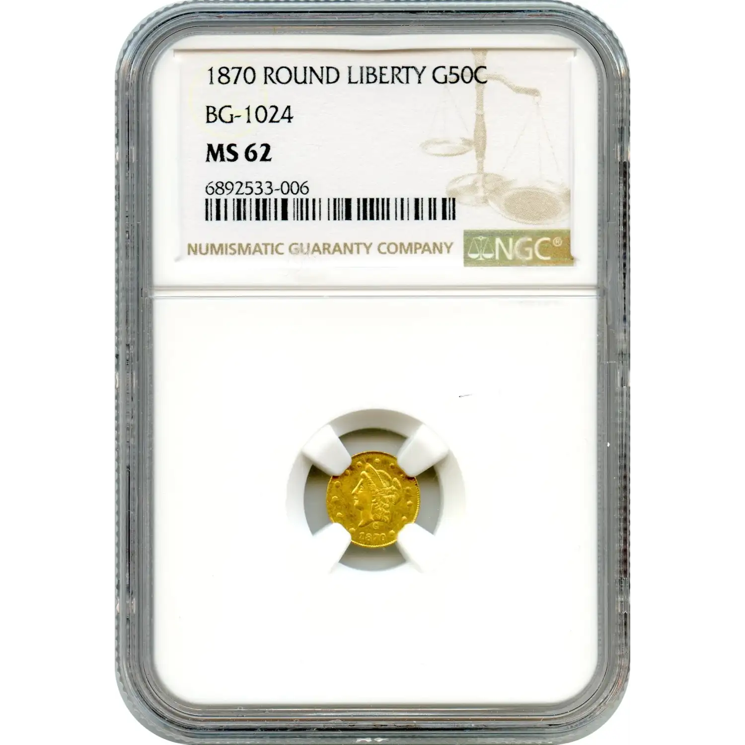 Read more about1860-G California Fractional Gold 25C Liberty Head Octagonal PCGS MS-62 BG-731