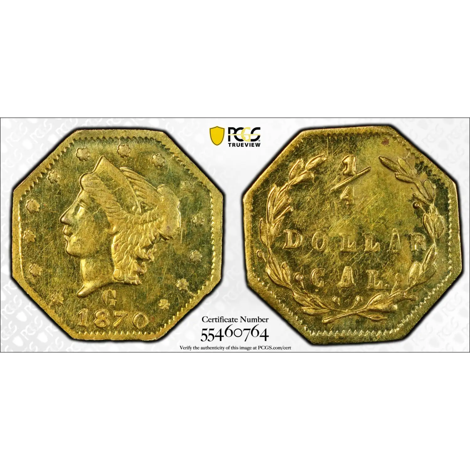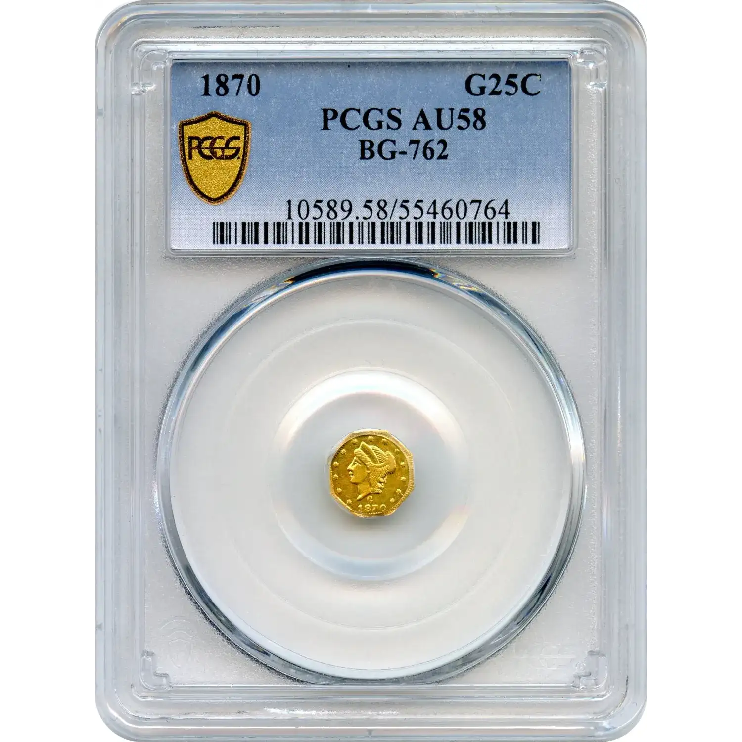Read more about1860-G California Fractional Gold 25C Liberty Head Octagonal PCGS MS-62 BG-731
