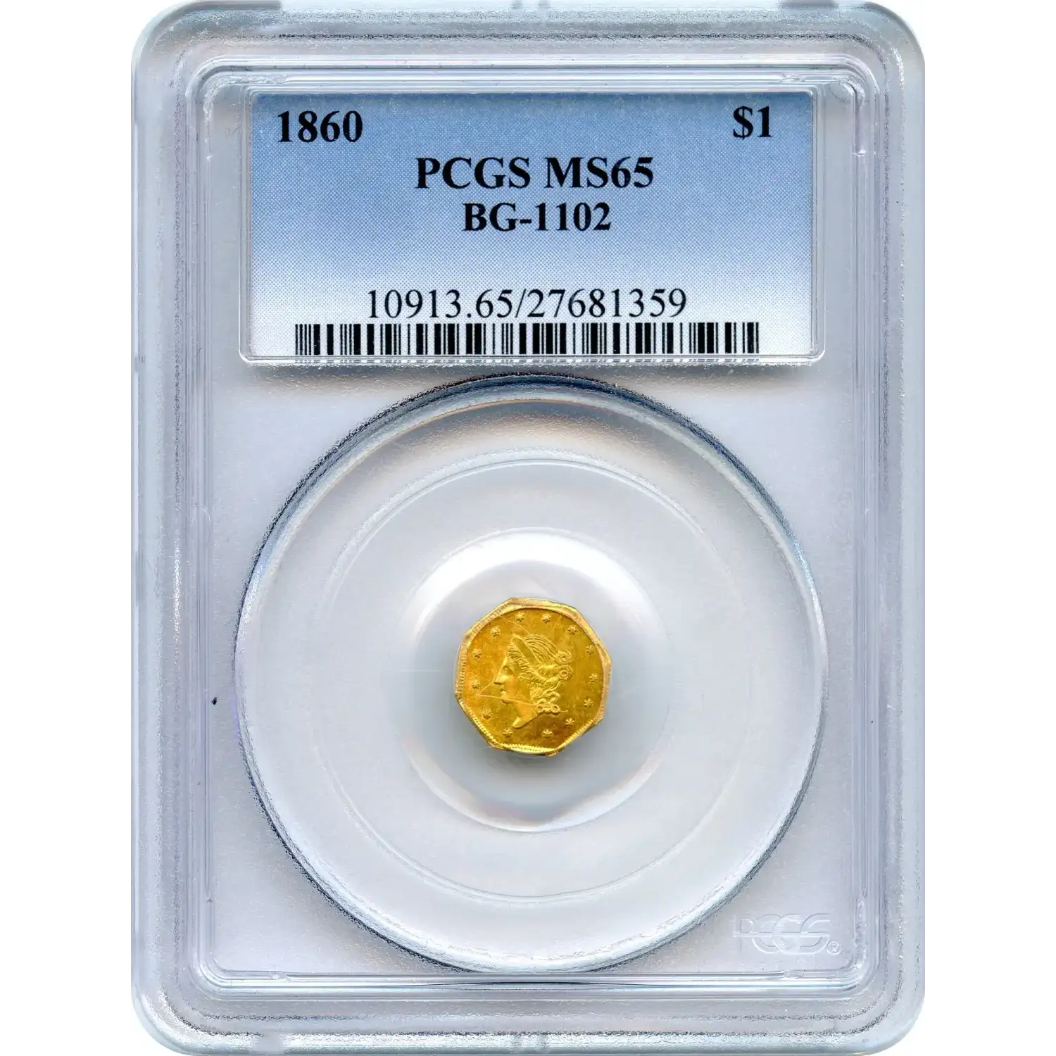 Read more about1860-G California Fractional Gold 25C Liberty Head Octagonal PCGS MS-62 BG-731