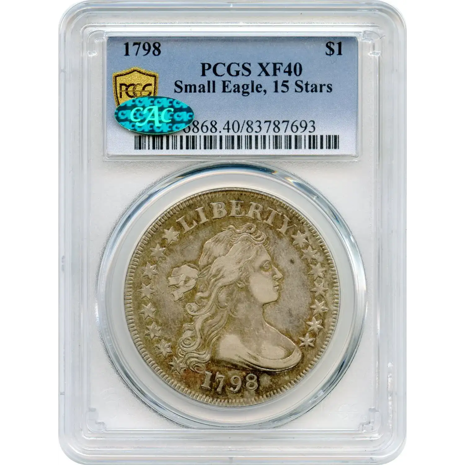 PCGS has graded just 13 examples of this variety in XF40, with only 17 finer, underscoring its scarcity and importance. In CAC, there are 2 in XF40 with only 5 finer. As a rare variety within the Draped Bust dollar series, this coin holds particular appeal for advanced collectors seeking historically significant and genuinely elusive early federal silver.