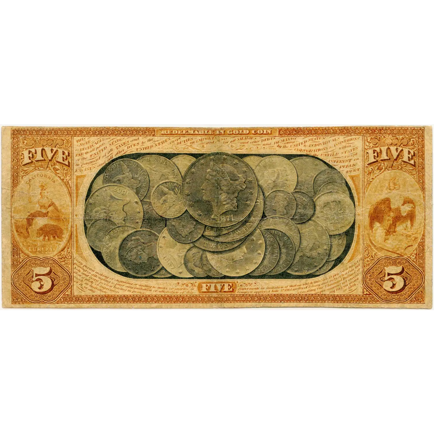 With most notes heavily circulated and redeemed quickly for hard cash, survivors are rare, especially in higher grades. California issues remain highly desirable among collectors, and this piece from the state's first and most prolific National Gold Bank stands as a key relic of its unique gold-backed currency era.
