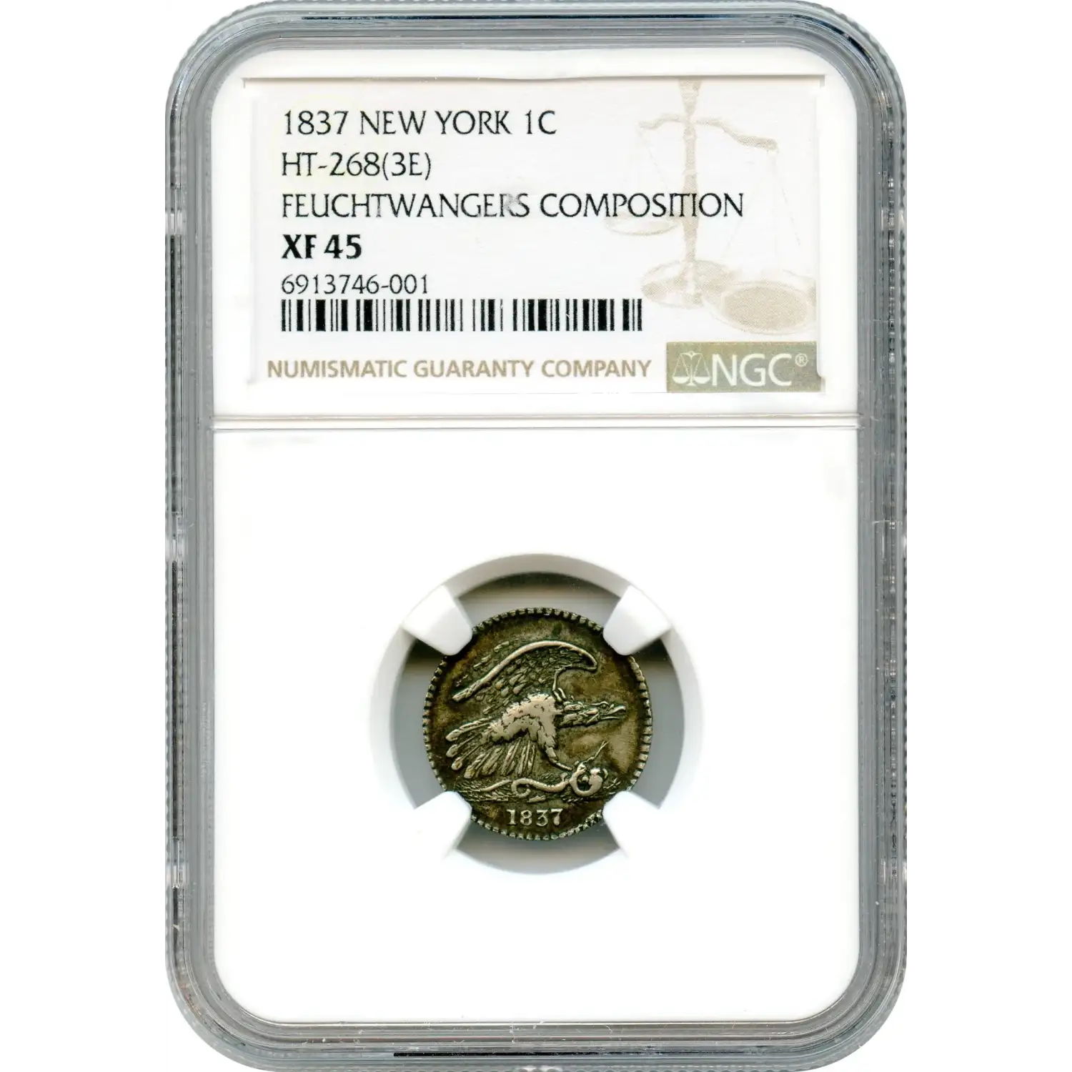 This example, certified NGC XF-45, displays even wear that reflects its use in commerce, with the major design elements remaining clear and legible. NGC has graded 10 examples at the XF-45 level, with 119 finer, placing this piece among a relatively limited group at this specific grade and underscoring its standing as a well-preserved survivor of an innovative private coinage.