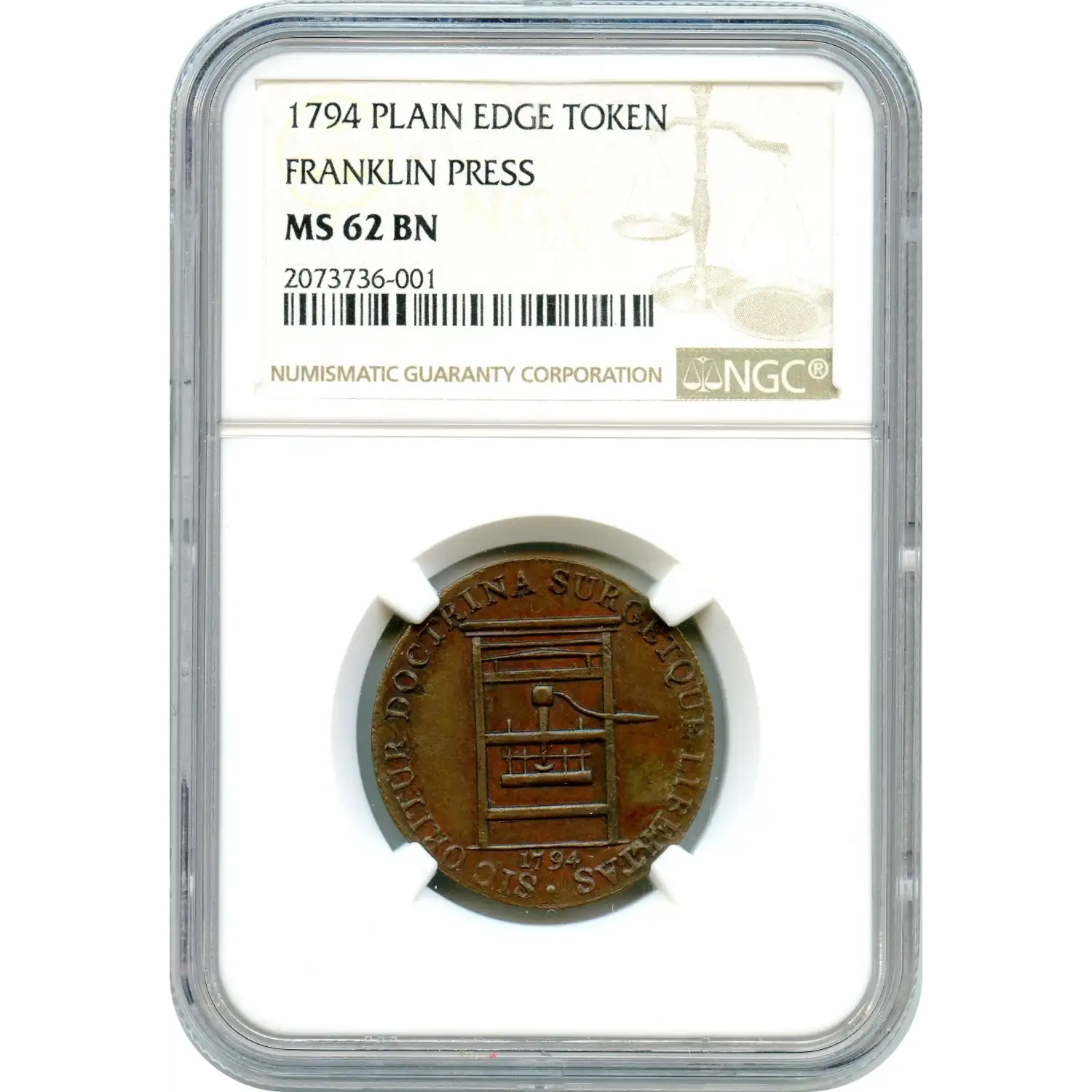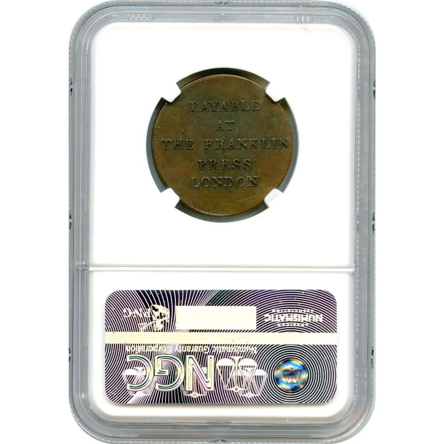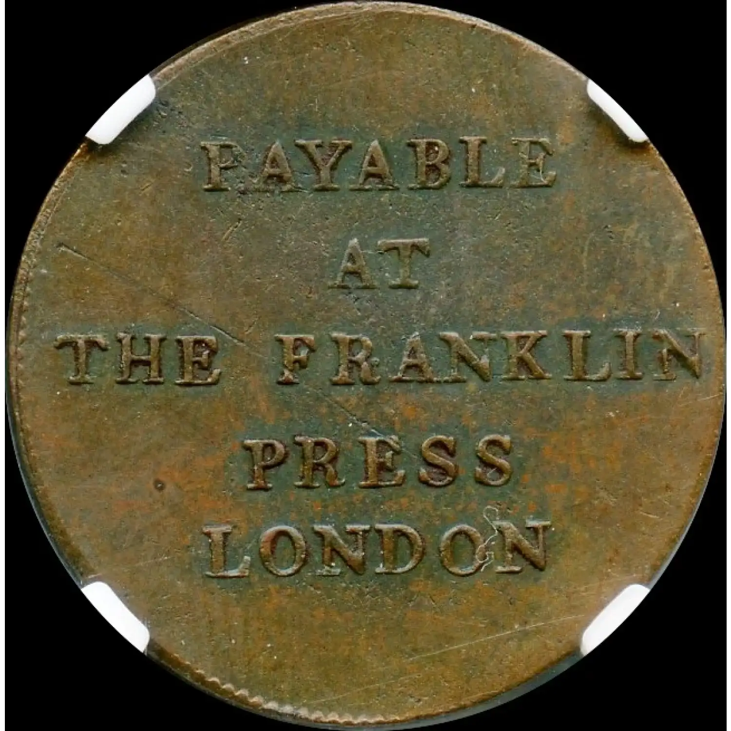 In terms of population, NGC has graded 34 examples at the MS62 level, with 27 certified finer. This places the token within a relatively small group of higher-grade survivors, making it a strong and representative example of an English tradesman’s token that has crossed collecting boundaries through its enduring connection to the Franklin name.