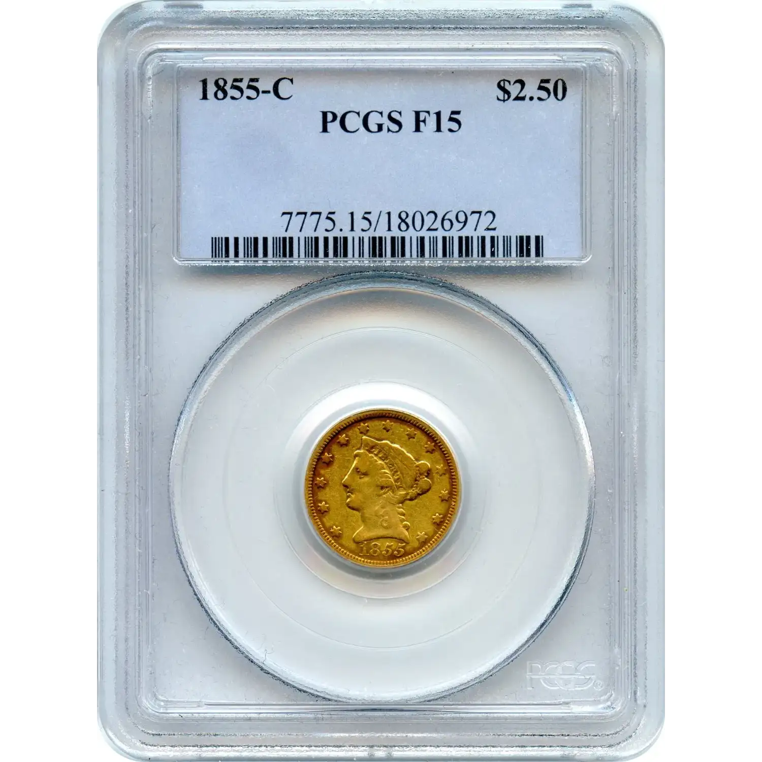 The 1855-C $2.50 Liberty Head Quarter Eagle is a classic product of the Charlotte Mint, a facility that served the Southern gold fields and produced some of the rarest U.S. gold issues. Doug Winter notes, “The 1855-C has the lowest mintage of any individual date Charlotte quarter eagle…. The 1855-C remains one of the scarcest Charlotte quarter eagles in terms of overall rarity,” a judgment supported by both historical records and modern population data.