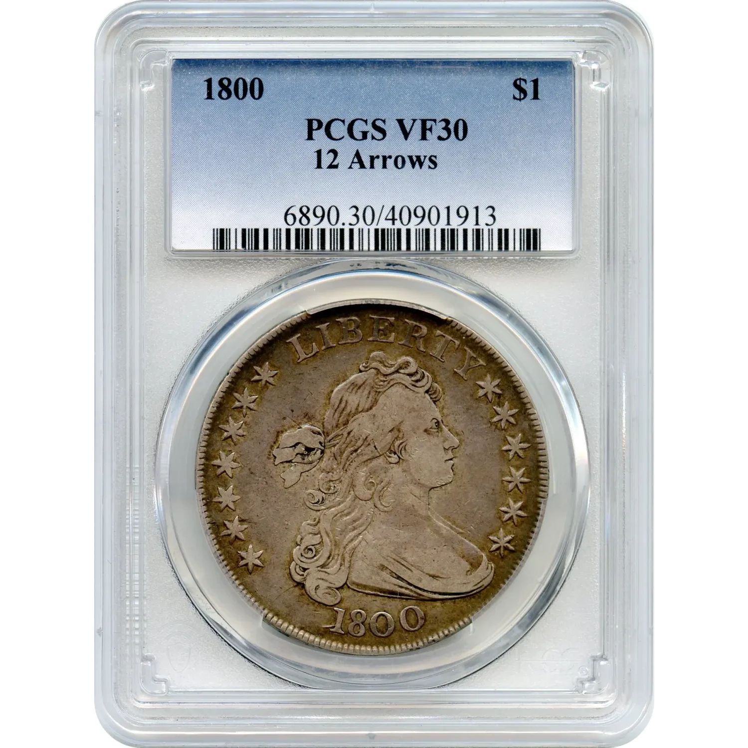 Graded VF-30 by PCGS, the coin shows even circulation with clear central detail and balanced wear across both sides. Liberty’s hair retains pleasing definition, while the reverse elements remain sharp enough to emphasize the unique arrow count. PCGS has graded 25 examples of the 12 Arrows variety at VF-30, with 71 finer, placing this coin within a well-defined but competitive tier of surviving specimens.