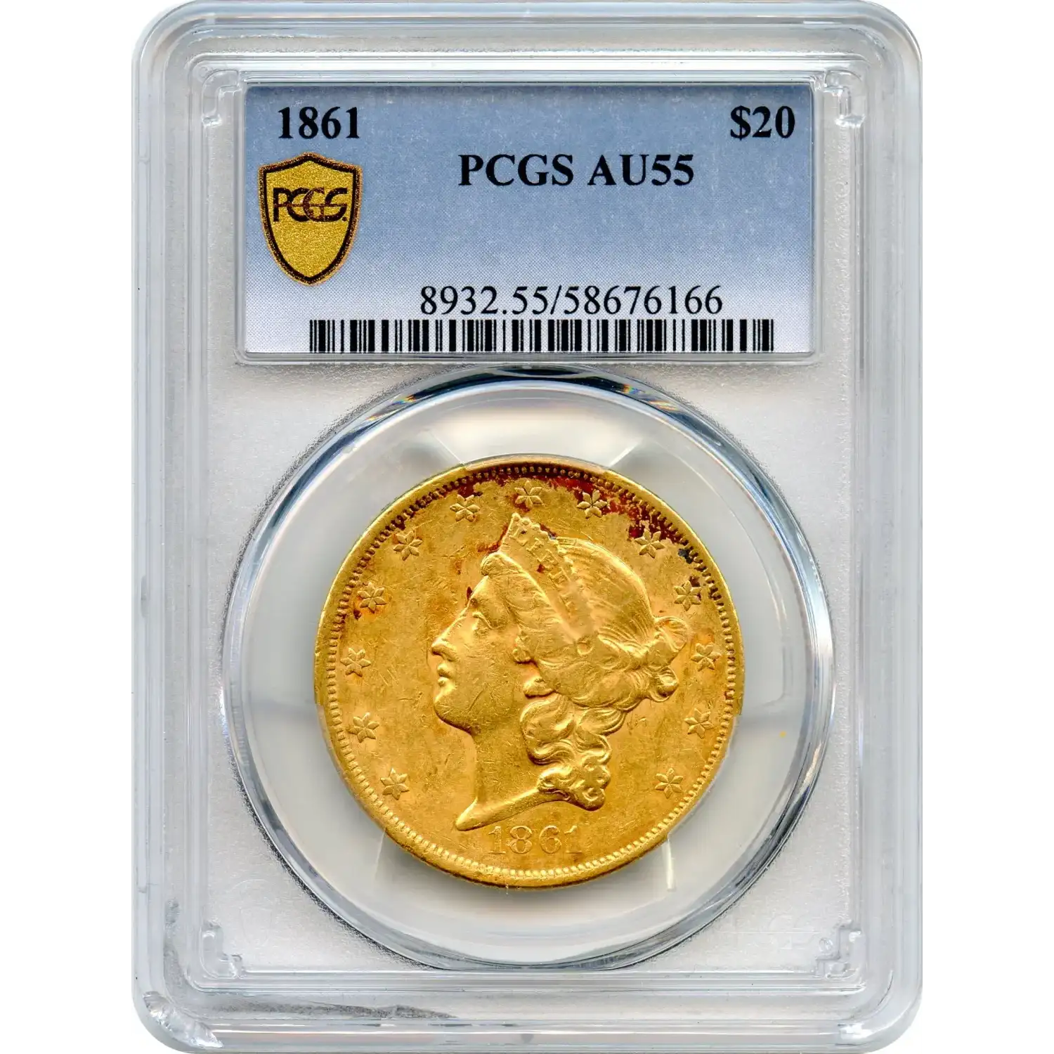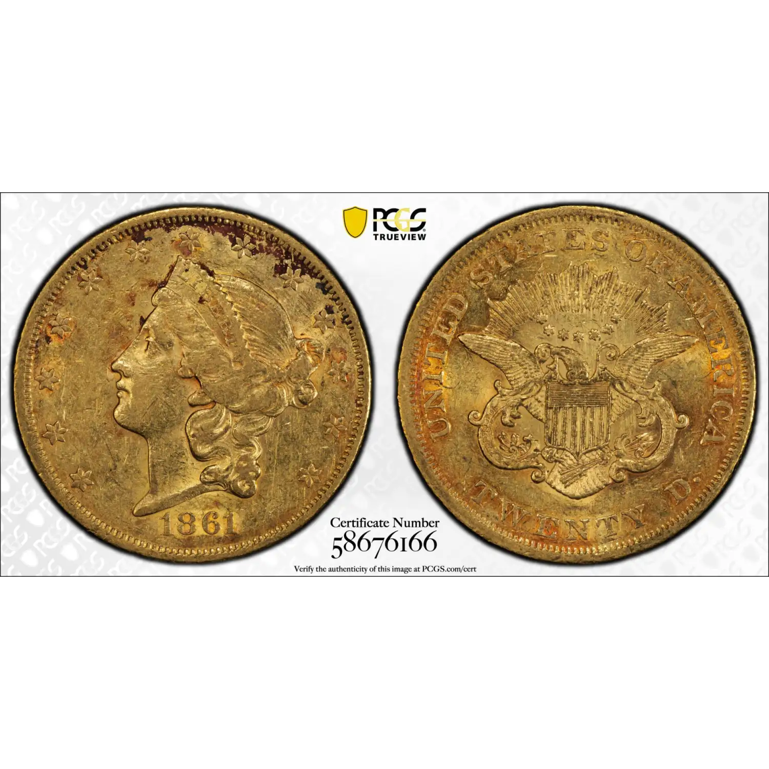 Possible shipwreck or Saddle Ridge find? Struck in the opening year of the Civil War, the 1861 Liberty Head double eagle reflects a nation on the brink of profound change. Gold coins of this era circulated widely in commerce and international trade, and many pieces saw heavy use as the conflict disrupted normal economic patterns. Survivors often show the marks of circulation, making attractive About Uncirculated examples especially desirable.