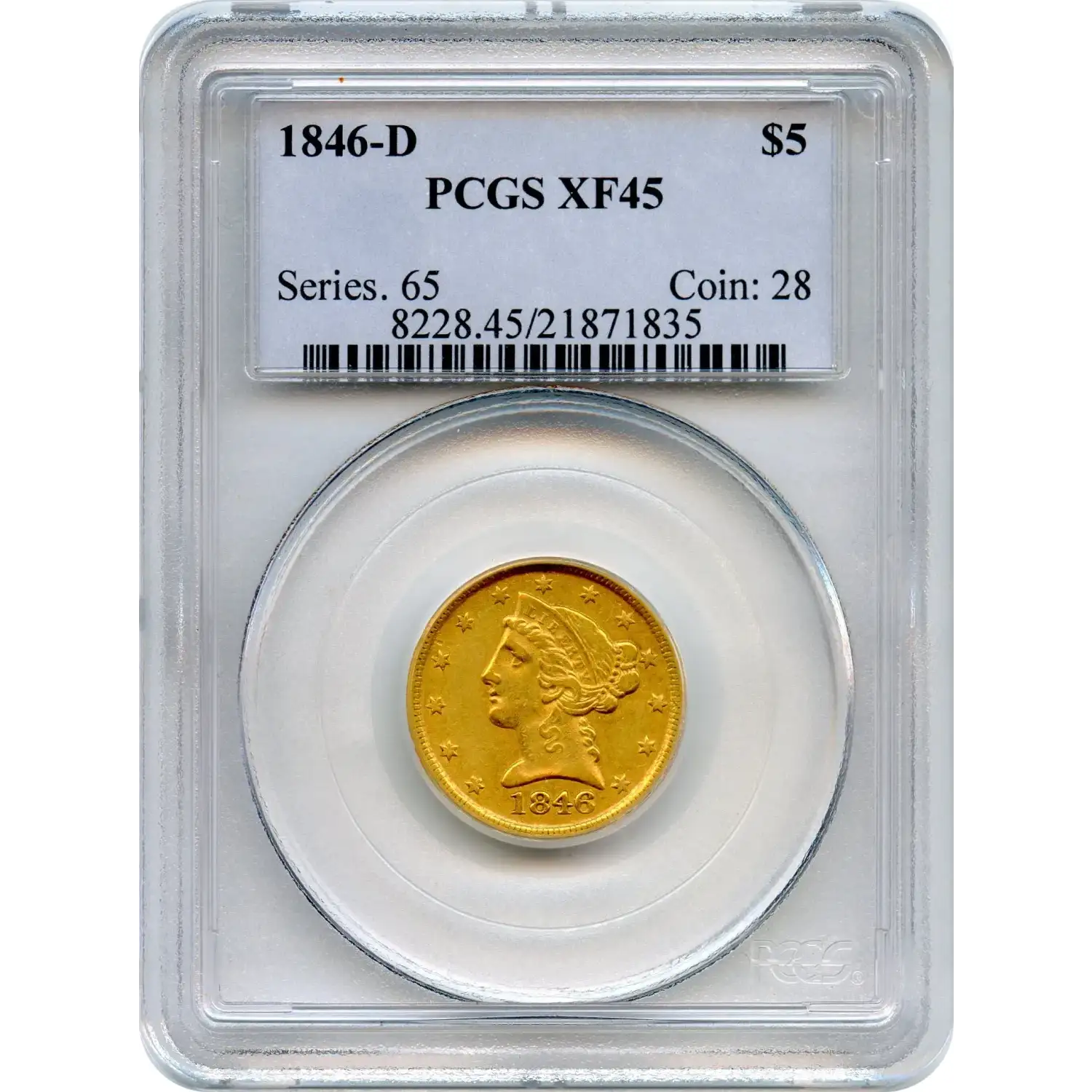 PCGS has graded just 30 pieces at XF-45, with only 62 finer. This modest population underscores the difficulty of locating Dahlonega half eagles that retain this level of definition, especially from a year like 1846 when most pieces entered active circulation soon after striking.