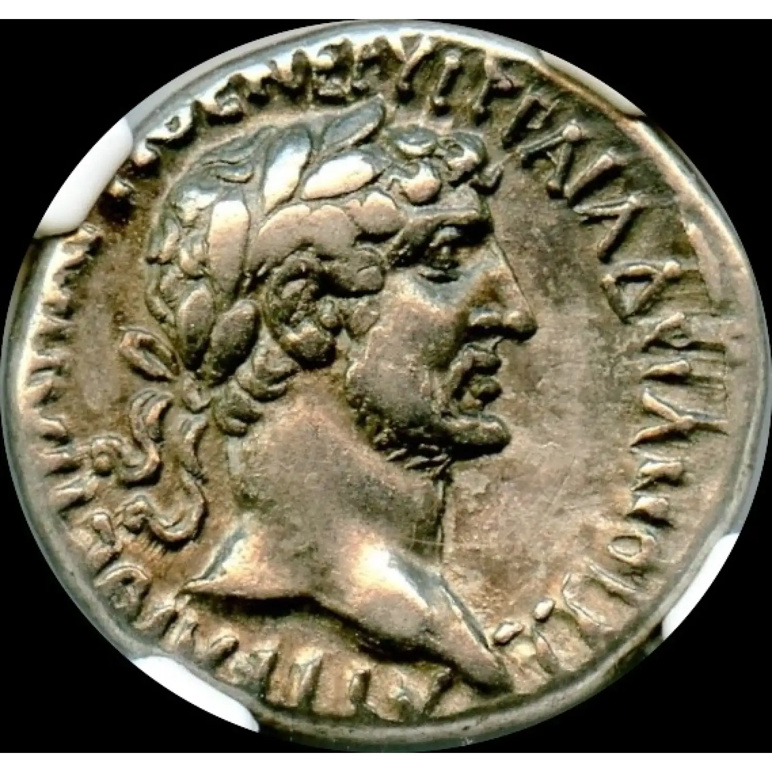 Obverse: Laureate head or bust of Hadrian right, often cuirassed and draped. Inscription typically: ΑΥΤ ΚΑΙ ΘΕ ΤΡΑ ΠΑΡ ΥΙ ΘΕ ΝΕΡ ΥΙ ΤΡΑΙΑΝΟΣ ΑΔΡΙΑΝΟΣ ΣΕΒ (or variants), emphasizing his divine adoptive lineage.