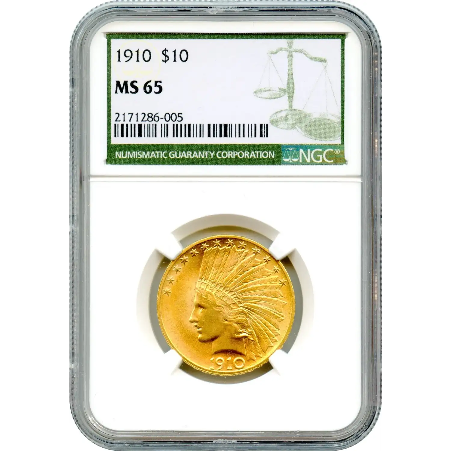 Well-struck examples from 1910 often display strong definition in Liberty’s portrait and the standing eagle on the reverse, with rich luster that accentuates the design’s sculptural quality. In Gem condition, the surfaces typically show only minor marks, preserving the visual strength intended by its creators.