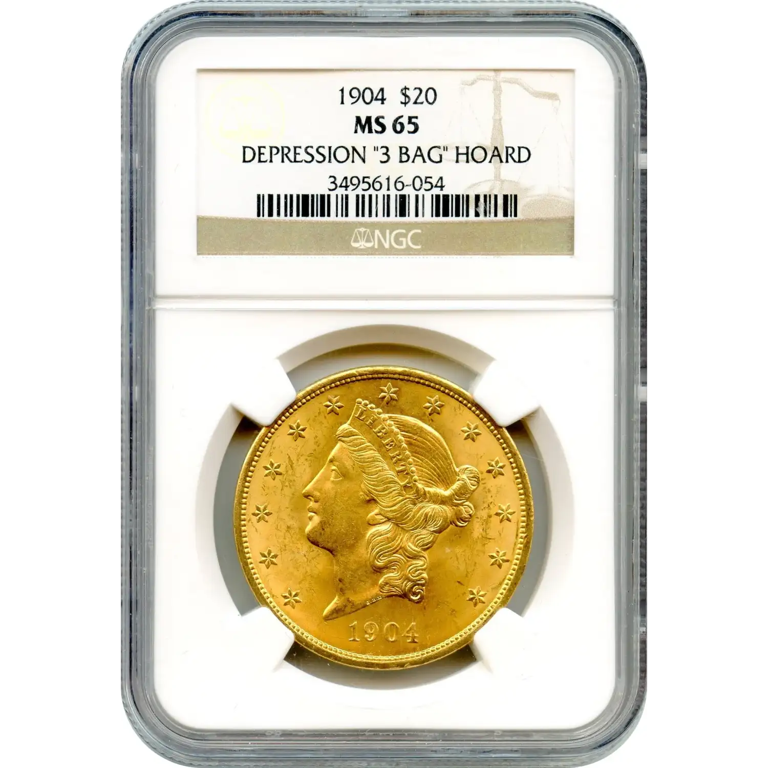 By 1904, the Liberty Head double eagle had settled into a mature, almost standardized presence, struck in large numbers to satisfy banking and export needs rather than domestic circulation. An example certified NGC MS-65 captures that late-series consistency, where precision in striking meets the practical demands of a workhorse gold denomination.