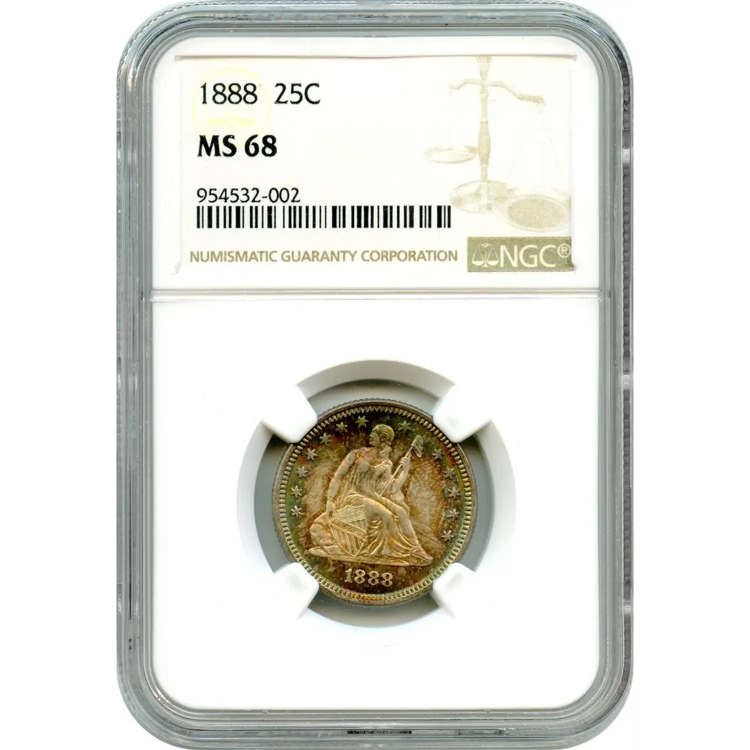 As a result, the 1888 quarter represents a coinage era defined by constrained output and overlooked necessity. In MS68, it is not merely a survivor, but an elite representative of a series where true high-grade examples are few, and where even modest mintages translated into lasting rarity.